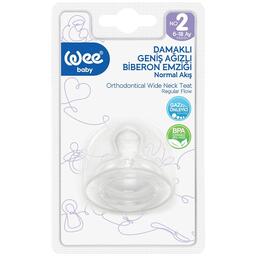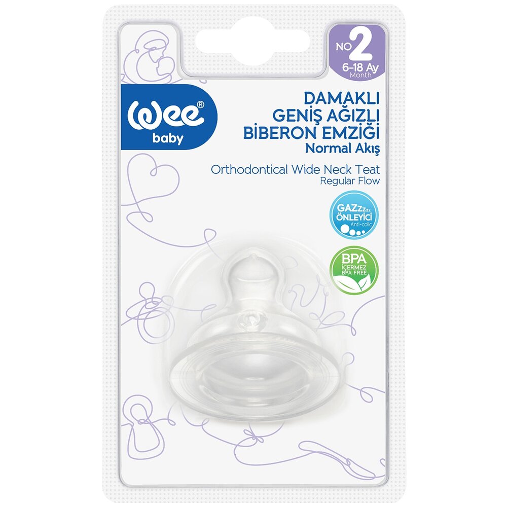 Соска WeeBaby ортодонтическая для бутылочек с широким горлышком № 2 предназначен для от 6-ти до 18-ти месяцев. Особенности:<br />Не содержит бисфенол А<br />Подходит для бутылочек серии Classic Plus<br />Благодаря ортодонтическому концу не оказывает давления на небо малыша при кормлении<br />Air System соска обладает антиколиковой особенностью. Что помогает исключить появление коликов во время кормления<br />Благодаря антиколиковой особенности позволяет обеспечить непрерывное кормление малыша.