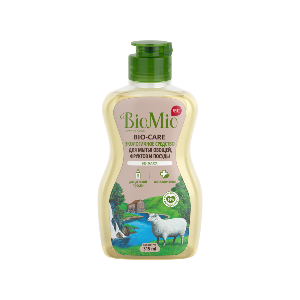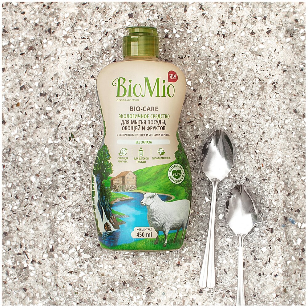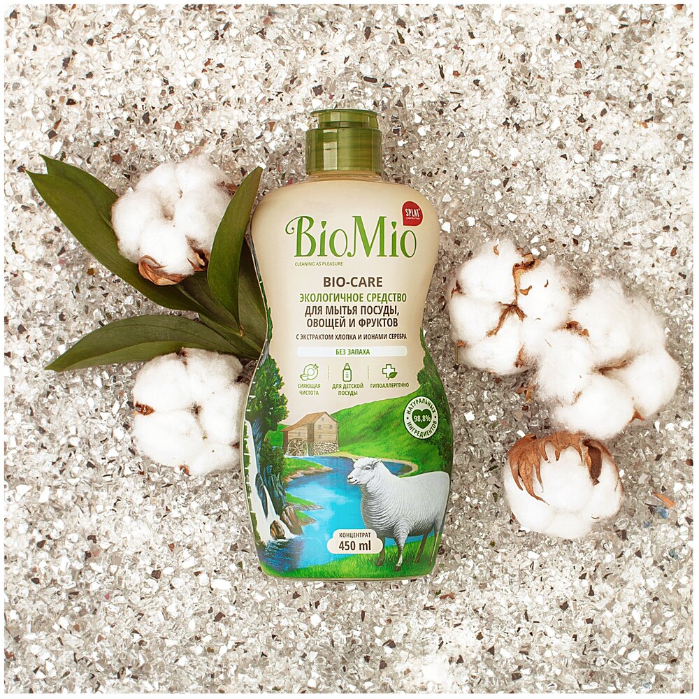 BioMio Средство для мытья посуды, овощей и фруктов без запаха с экстрактом хлопка, 0.315 л