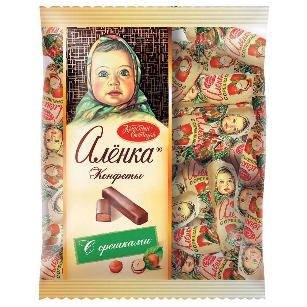 Тоненькая «Аленка» с орешками – конфеты удлиненной формы из нежной помадки-пралине с кусочками дробленых лесных орехов, покрытой ароматной шоколадной глазурью. Тающая во рту орехово-шоколадная сладость с мягкими сливочными оттенками, изысканная форма стройных шоколадных «палочек», удобная упаковка 250 г.