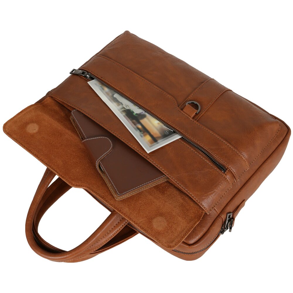 Мужской портфель фирмы Polar выполнен из экокожи. Портфель имеет одно основное отделение, которое закрывается на металлическую молнию. Внутри есть отделение для электронных устройств или ноутбука с диагональю до 15 и открытый кармашек. Модель вмещает формат A4 . На передней и задней стенке сумки есть отделения, которые закрываются на магнитные кнопки и карманы на молнии. Высота ручек 10 см, в комплекте есть регулируемый наплечный ремень, максимальная длина 145 см.