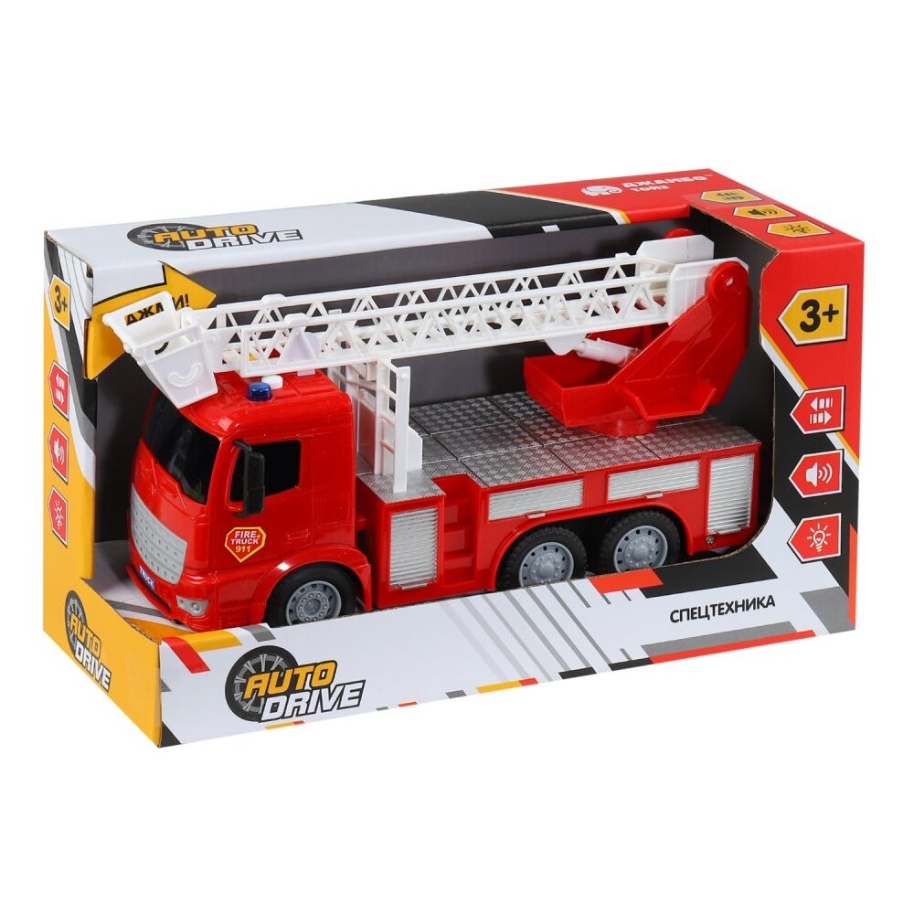 Инерционная пожарная машина на батарейках AUTODRIVE выглядит очень реалистично, а световые и звуковые эффекты сделают игровой процесс еще более увлекательным. С такой машинкой ребенок почувствует себя настоящим Пожарником У машинки горят проблесковые маячки, а сама спецтехника имитирует звук зажигания двигателя Благодаря инерционному механизму игрушка перемещается самостоятельно, стоит только немного подтолкнуть машину вперёд или назад, а затем отпустить, и она поедет сама. Пожарная машина оснащена функциональной лестницей, которая выдвигается и поворачивается Игры с транспортом тренируют: - визуальное и слуховое восприятие, - координацию движений, - внимание, - фантазию. Игрушка выполнена из качественных, безопасных для детского здоровья материалов. Цвет: красный Возраст: 3+ Размер упаковки: 29,5*12*16,5см Батарейки 3*AG13 вставлены в игрушку