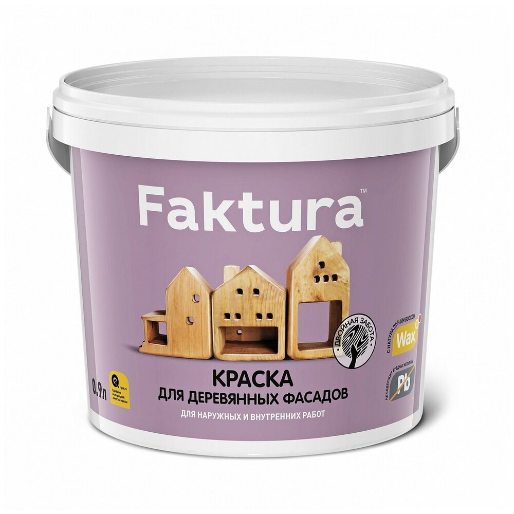 Краска FAKTURA для деревянных фасадов водоразбавляемая на основе специального акрилового связующего и натурального воска. Подходит для любых деревянных поверхностей (кроме полов). Образует водо- и атмосферостойкое эластичное паропроницаемое («дышащее») покрытие, которое не разрушается при сезонном изменении состояния древесины, обладает высокими гидроизолирующими свойствами. Подходит для окраски OSB. Краска FAKTURA для деревянных фасадов отличается высокой устойчивостью к перепадам температуры и неблагоприятным атмосферным условиям. Быстросохнущая. С биозащитой от синевы, плесени и других микроорганизмов. Отлично подходит для окраски деревянных фасадов и интерьеров домов, беседок, оград, декоративных и конструкционных элементов (наличников, рам, переплетов, дверей, шпалер, и т.д.) по вагонке, брусу, блок-хаусу, оцилиндрованному бревну.