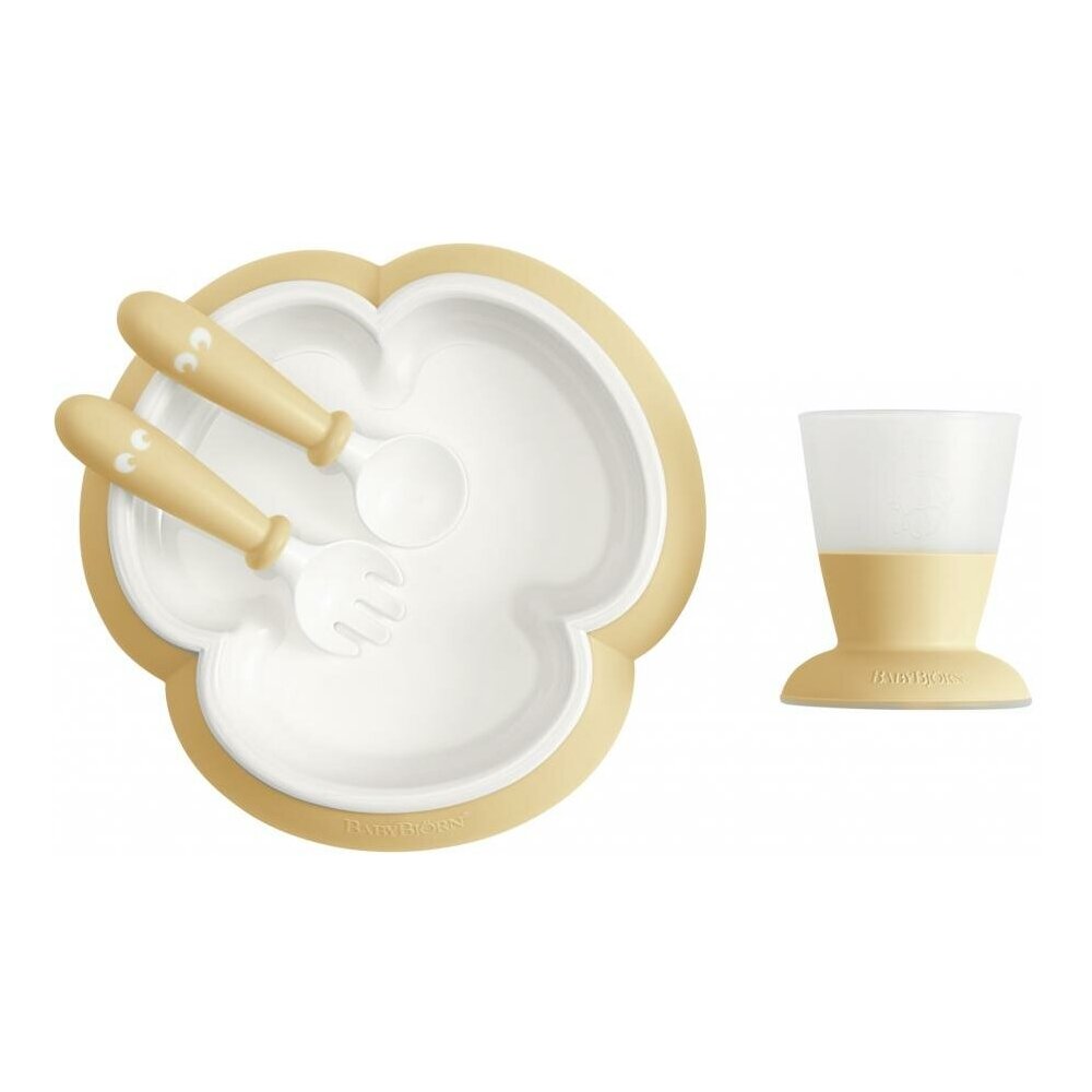 BabyBjorn комплект посуды (тарелка, чашка, ложка, вилка) нежно-желтый