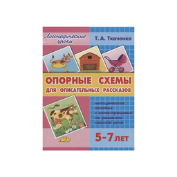Папка состоит из 13 карточек с планами-схемами и 17 карточек с предметными картинками, которые позволят ребенку-дошкольнику овладеть сложным видом связной речи — составлением описательных рассказов. Графические схемы, служащие зрительным планом рассказа, рассчитаны на все тематические группы из Государственной программы дошкольного образования.
