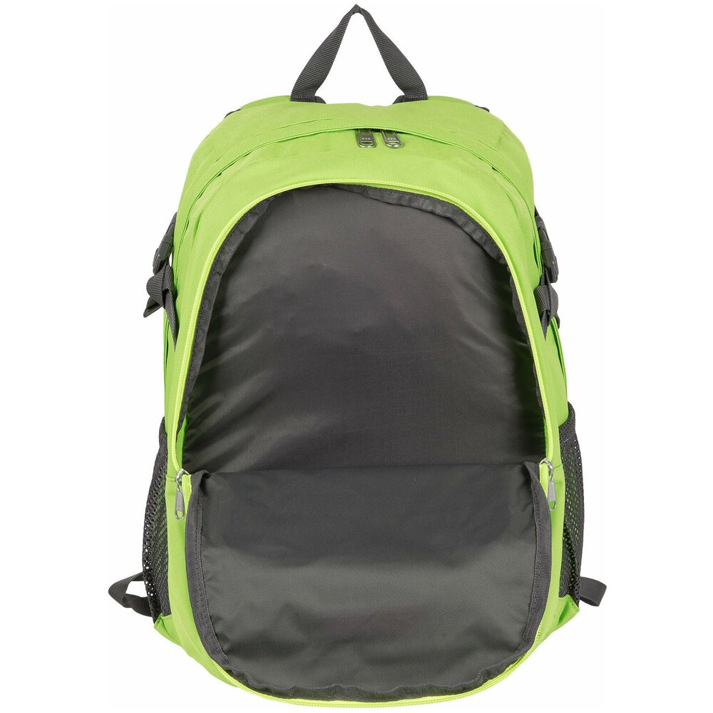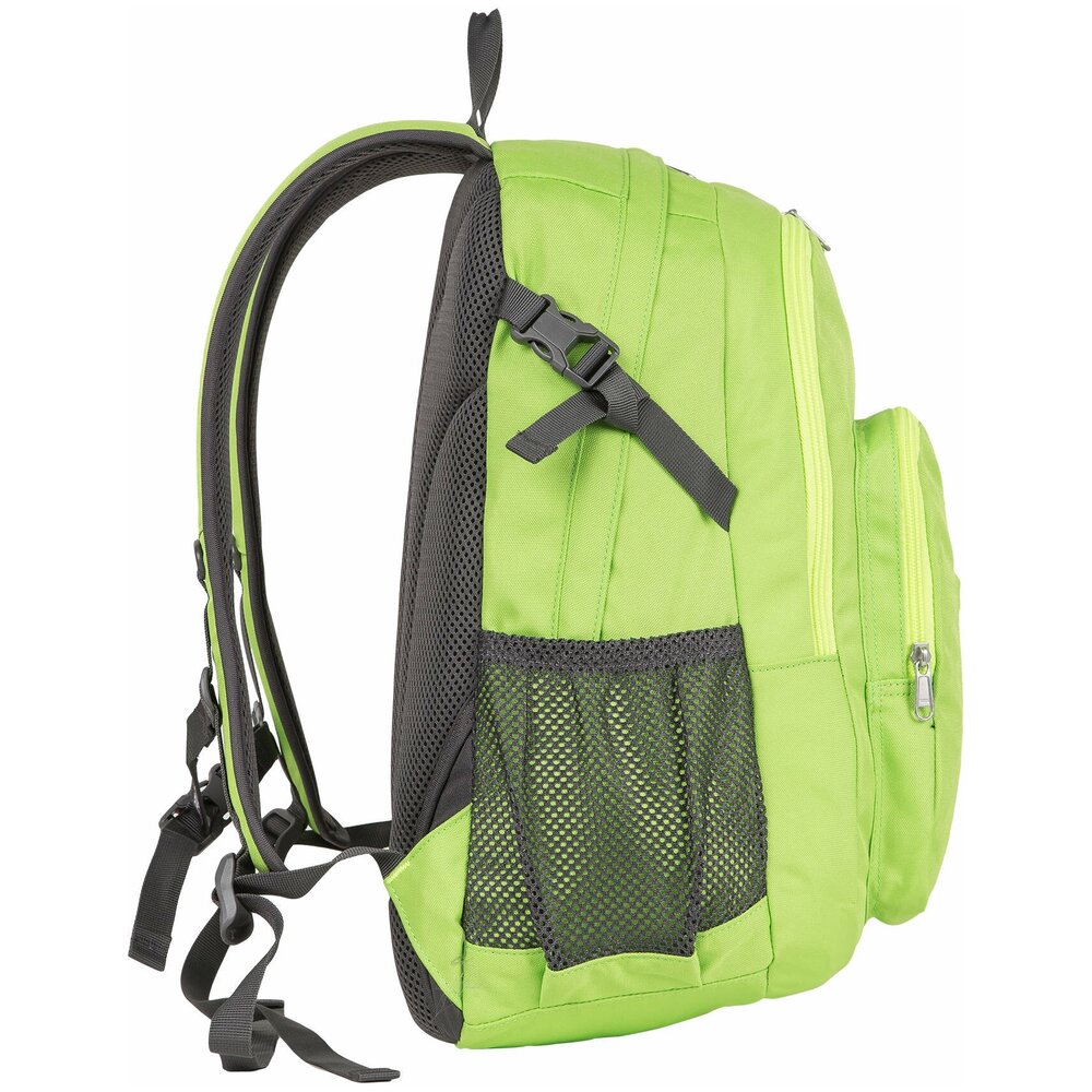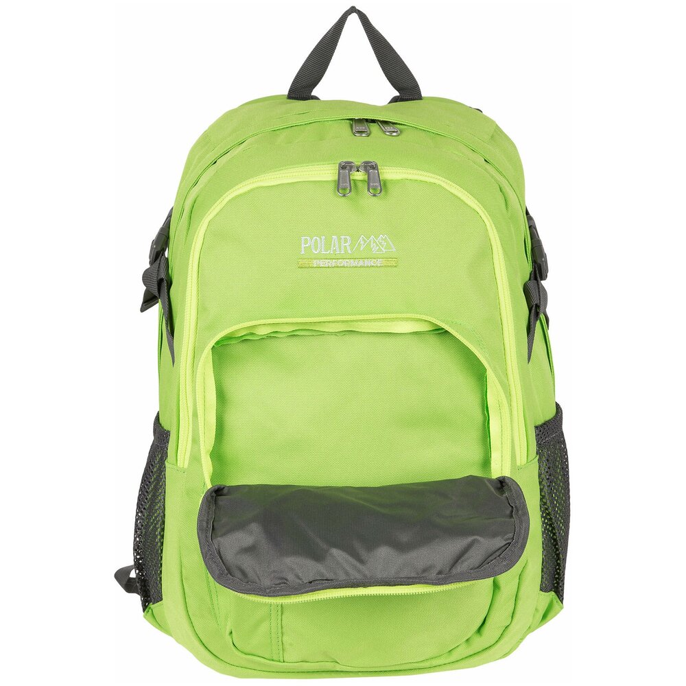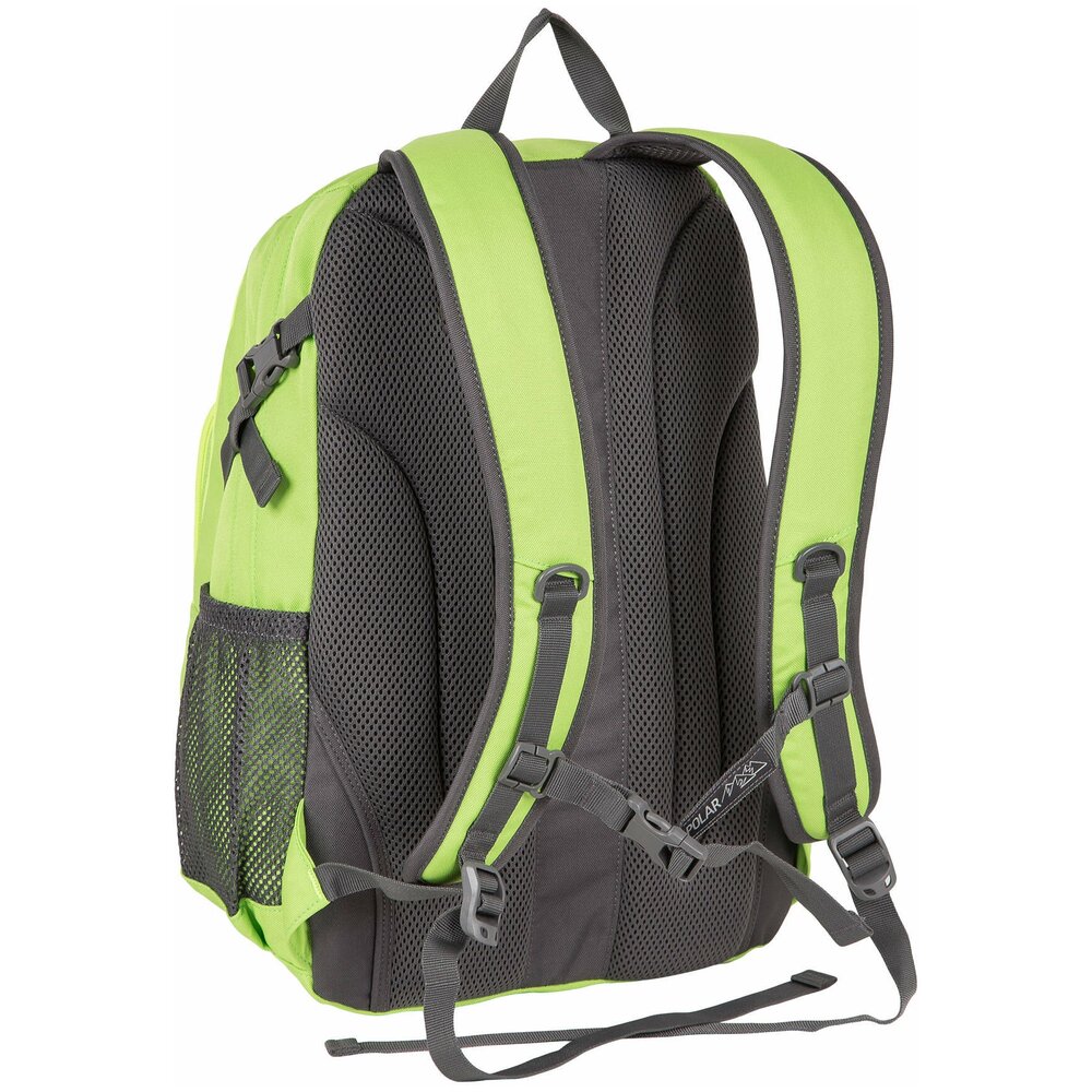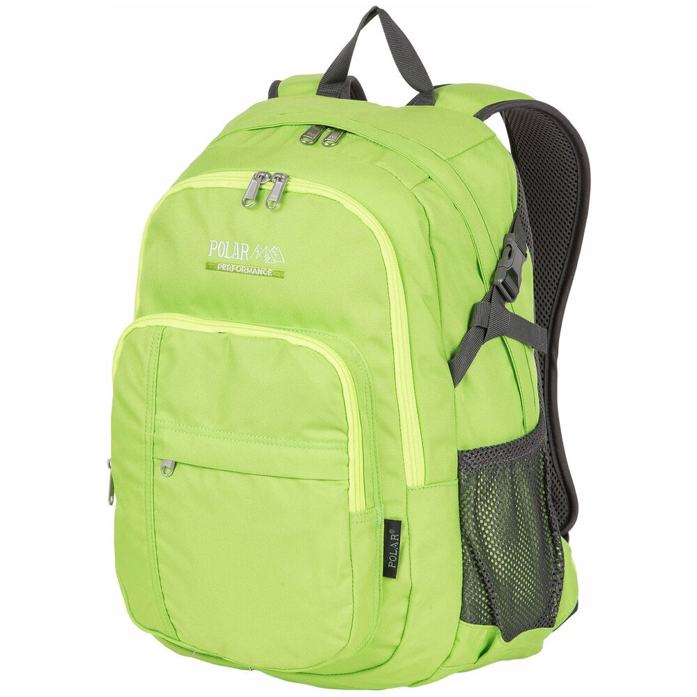 Удобный городской рюкзак ярких расцветок Полар выполнен из прочного полиэстера 600D. Полностью вентилируемая и удобная ортопедическая спинка, мягкие плечевые лямки создают дополнительный комфорт при использовании данной модели. Рюкзак состоит из центрального отделения, внутри которого есть большой карман на резинке для документов и планшета, из среднего отделения для спортивной обуви и более мелких вещей и накладного кармана на молнии, спереди которого есть также маленький кармашек на молнии. По бокам данной модели расположены сетчатые карманы для бутылок с водой. Дополнительные стяжки помогают отрегулировать объем рюкзака, а стяжки на лямках не позволяют им спадать с плеч, что делает носку еще более удобной. Рюкзак отлично подойдет для учебы, прогулок по городу или короткого путешествия.