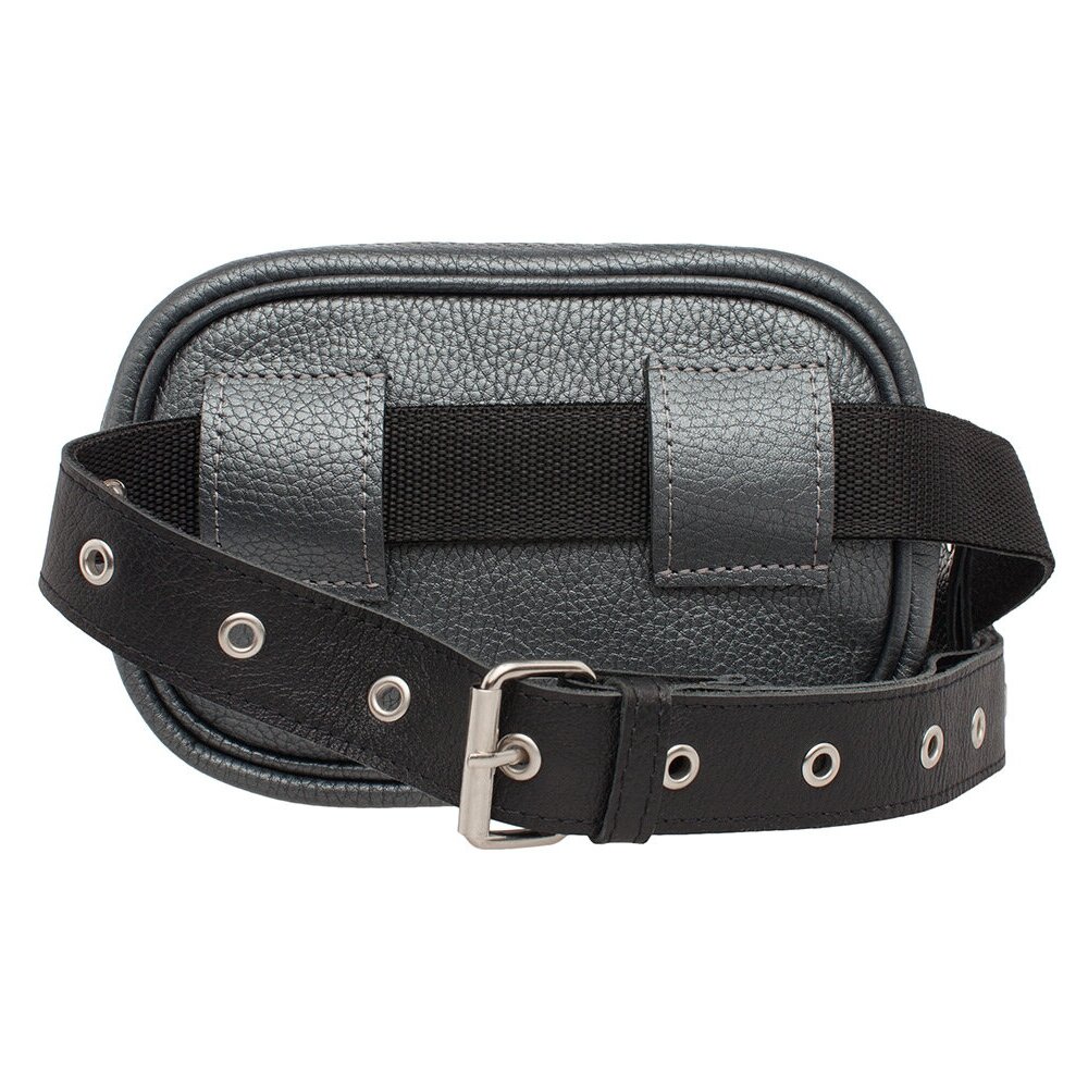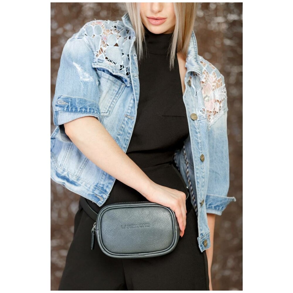 Кожаная женская сумка ALMA SILVER GREY в ультрамодном серебряном цвете – отличный подарок любой моднице. Этот универсальный аксессуар подойдет к летнему и зимнему гардеробу – послужит поясом на юбках и брюках, будет стильно смотреться с платьями и сарафанами самого разнообразного кроя и расцветки. В небольшом мягком пенале на подкладке поместится достаточно много мелких предметов – от документов до маникюрной пилочки. Благодаря предусмотренным на поясе отверстиям, длина ремня регулируется по талии или по бедрам. Экспериментируйте со своим образом, используя сумочку из нашего ассортимента, и радуйтесь множеству вариаций ее сочетаний с вашими любимыми нарядами.