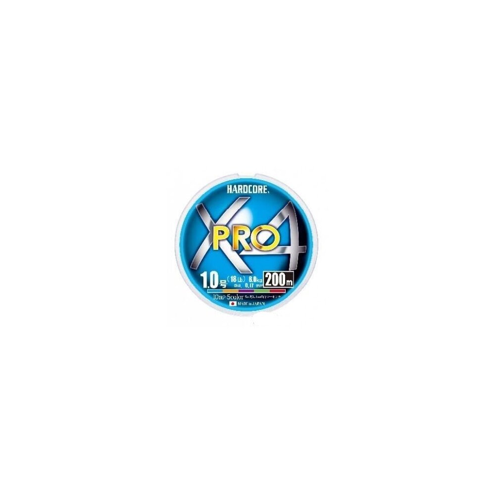 Шнур плетеный Duel PE HARDCORE X4 PRO 200m #1.0 5COLOR 8.0Kg (0.17mm)
