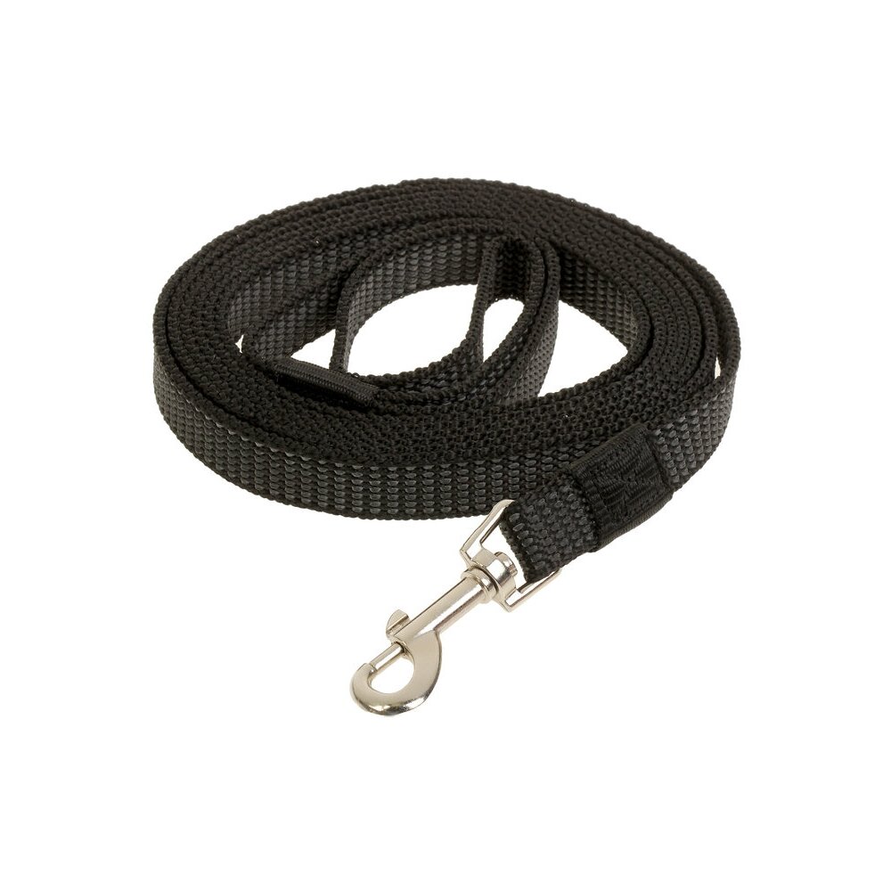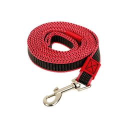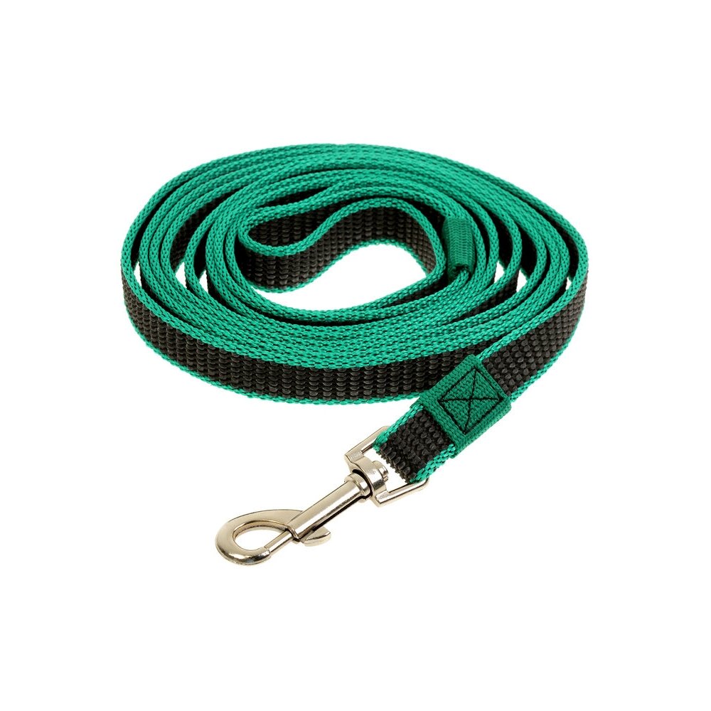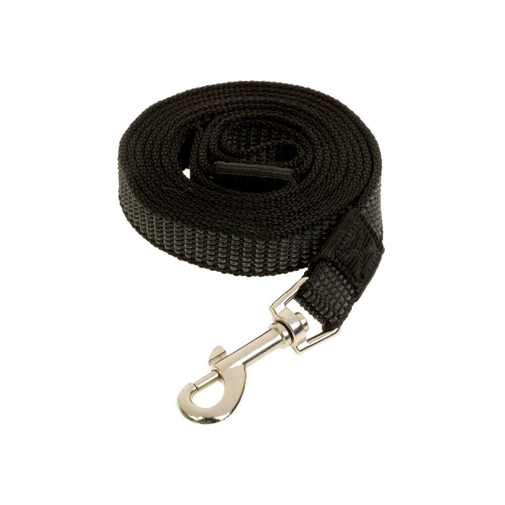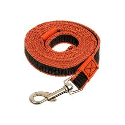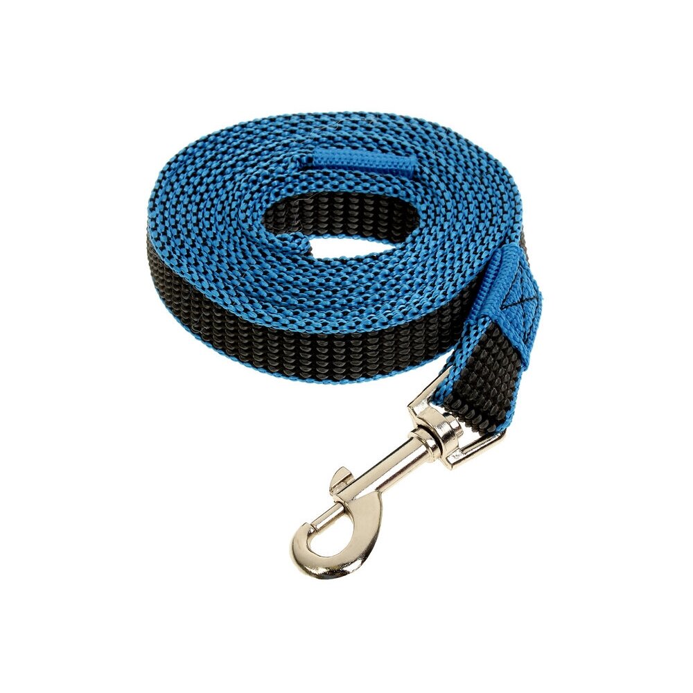 Удобный, прочный, надёжный поводок для собаки изготовлен из качественных материалов. С одного конца поводка находится качественный металлический карабин с застёжкой, обеспечивающий крепкую фиксацию. С другого конца — удобная петля, которая не натирает руку.