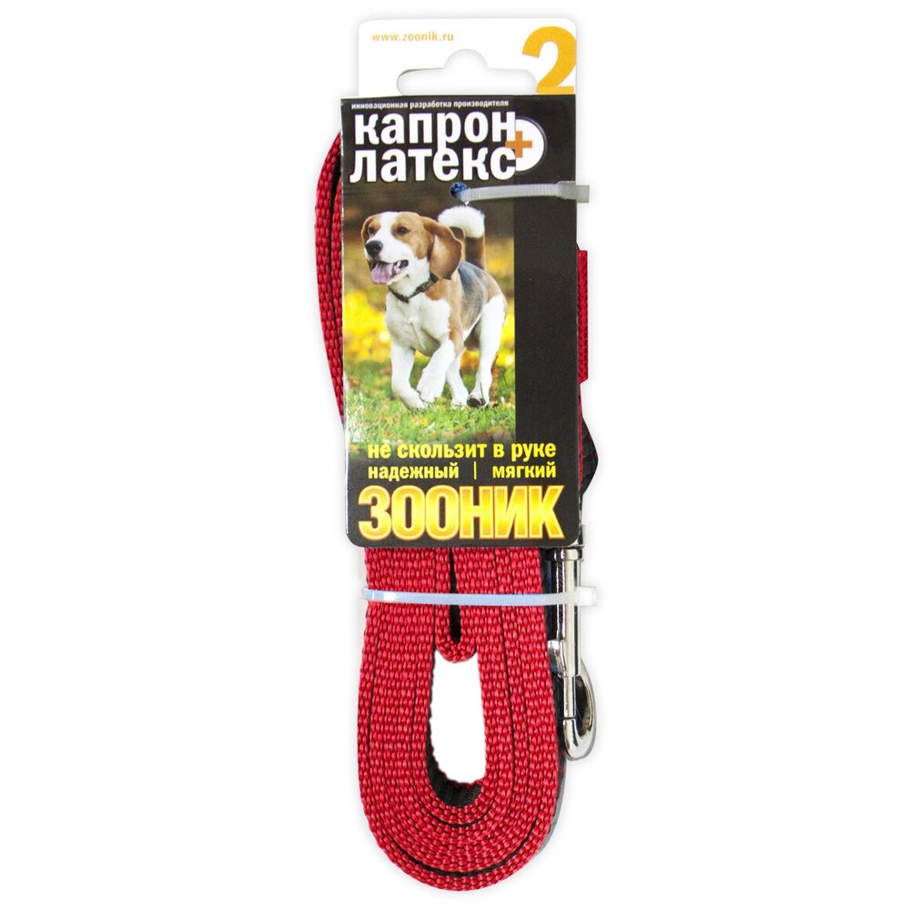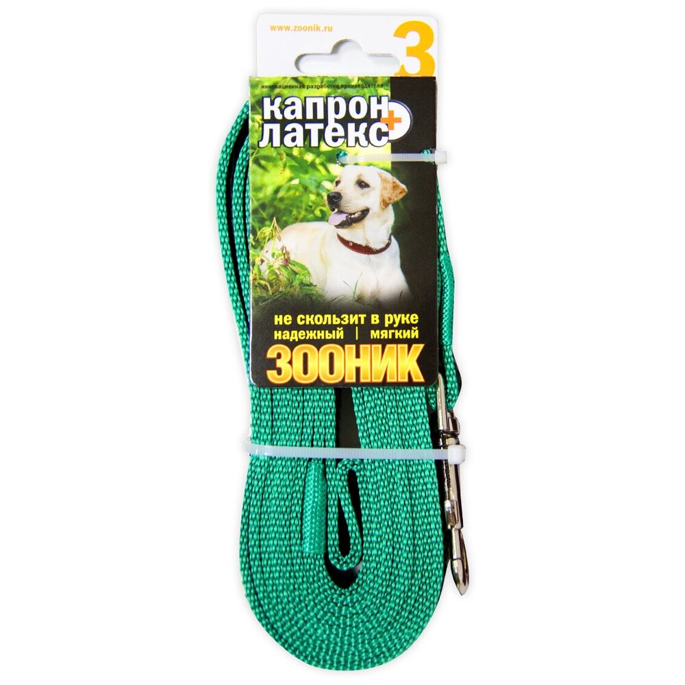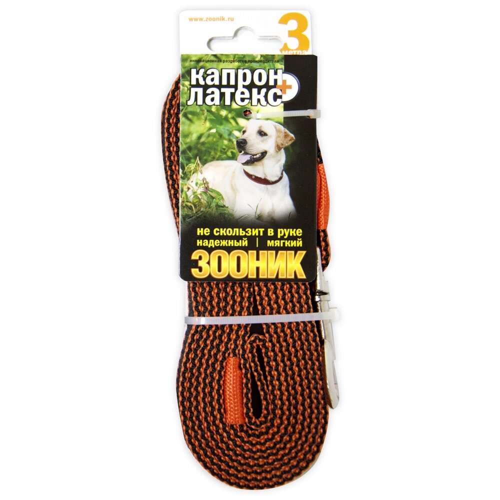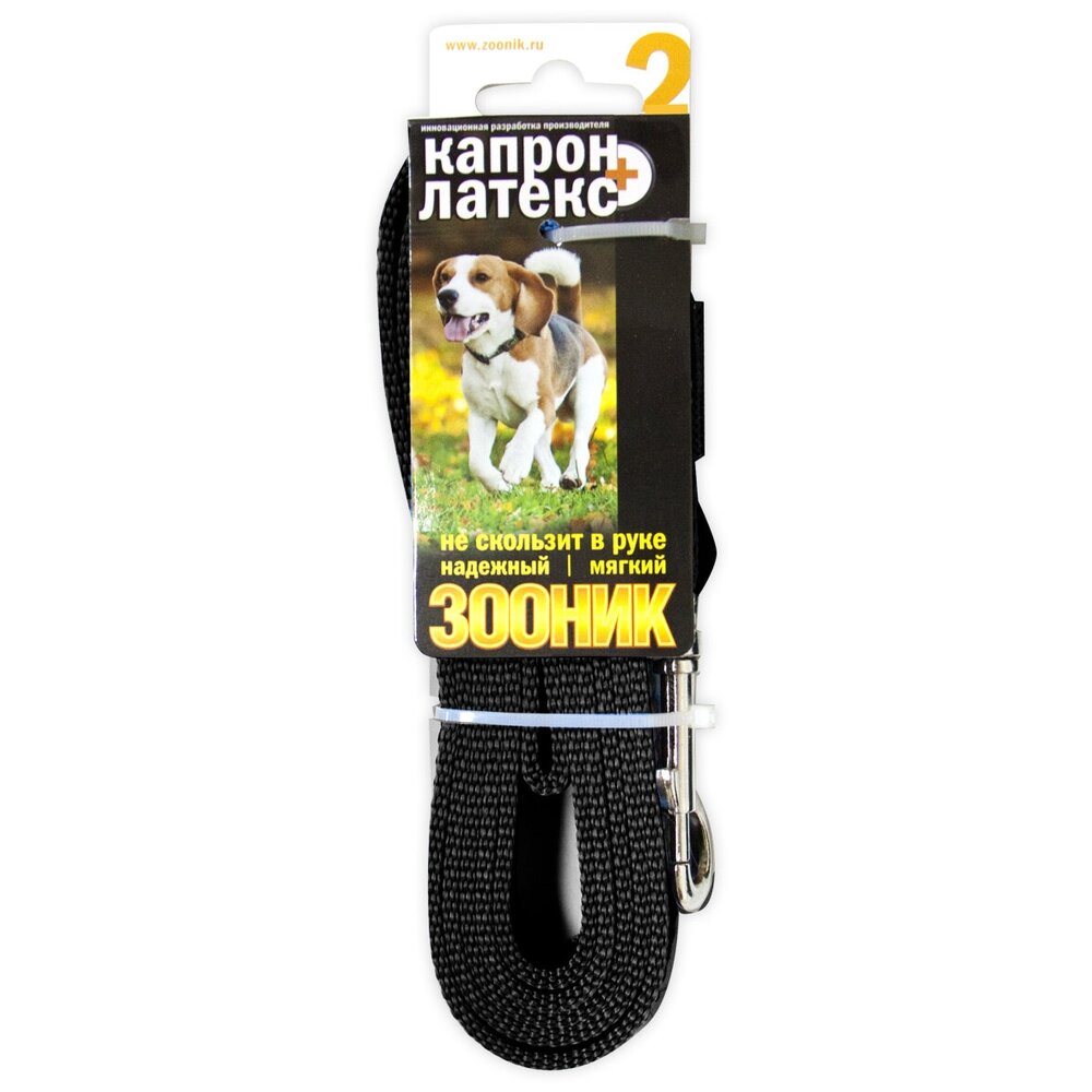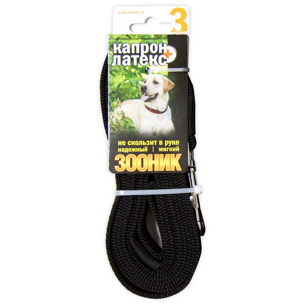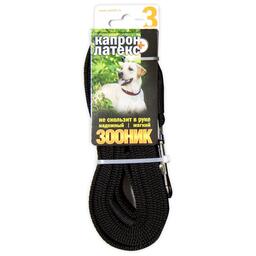 Поводок для собак Зооник капрон+латексная нить двойная черный 3 м 20 мм