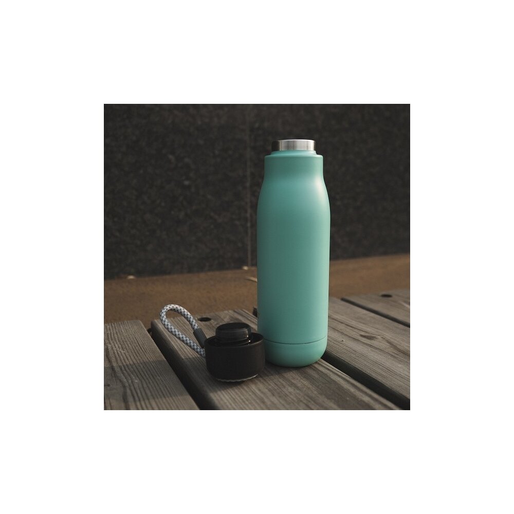 Двойные вакуумные стенки Вакуум и толстые стенки из нержавеющей стали поддерживают температуру горячих напитков до 10, а холодных – до 30 часов, поэтому любимые напитки всегда будут доступны в течение дня. При этом бутылку можно спокойно держать в руках без риска обжечься. Гигиеничное горлышко Узкое горлышко создано специально для питья, вам не потребуются дополнительные стаканы или емкости. Гладкая полированная поверхность легко очищается за считанные секунды и не накапливает на себе бактерии и грязь благодаря тому, что резьба для крышки спрятана внутри. Даже если вы находитесь на активном отдыхе или занимаетесь спортом, ваша бутылка всегда остается чистой и гигиеничной. Паракорд для переноски Шнур на крышке бутылки называется «паракордом» и позволяет вам брать её с собой, куда бы вы ни направлялись: держите её в руках, несите за ремешок или же прикрепите к снаряжению. Шнур легко вынимается при необходимости, просто потяните защитную крышку вверх. Нержавеющая сталь Высокое качество нержавеющей стали 18/8 делает термобутылку особенно прочной: она устойчива к коррозии, не разрушается и не впитывает запахи. Бутылка будет служить долго и не потребует замены деталей. Используемая сталь полностью пригодна для пищевых продуктов, не содержит фталатов и бисфенола-А. Открывается одним движением Чтобы закрутить или открутить крышку, достаточно всего одного оборота, что очень удобно, если вы на ходу или за рулем. Крышка с силиконовой вставкой полностью герметична, поэтому бутылку можно смело убрать в рюкзак, чемодан или сумку, не боясь, что ее содержимое прольется. Стильный дизайн Привлекательный внешний вид, яркие цвета и качественные материалы делают эту термобутылку идеальным компаньоном для активных и следящих за своим здоровьем людей. Она подчеркнет ваш имидж и добавит ему ярких акцентов. Берите её с собой на прогулки, в спортзал и в любое путешествие, не боясь, что ваши напитки его не выдержат. Объем термобутылки – 350 мл. Моется вручную.