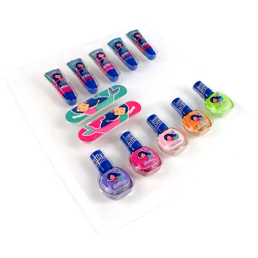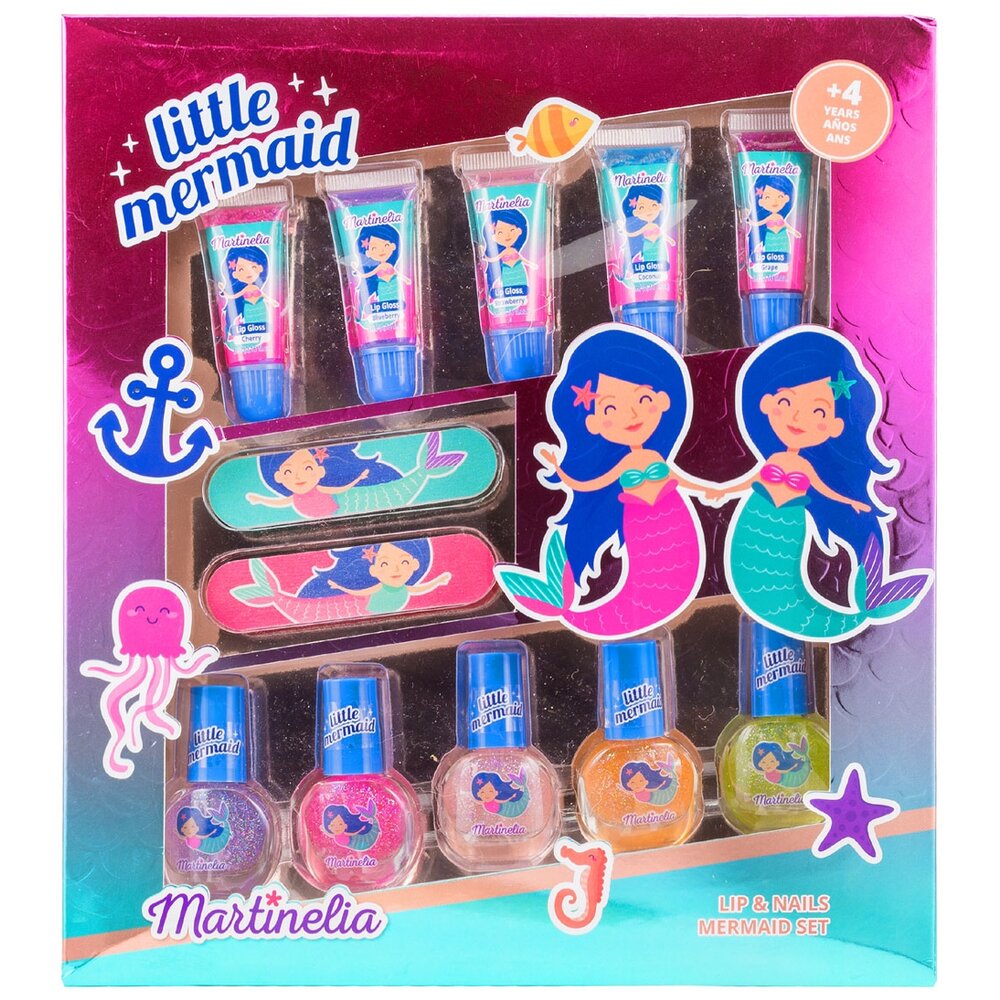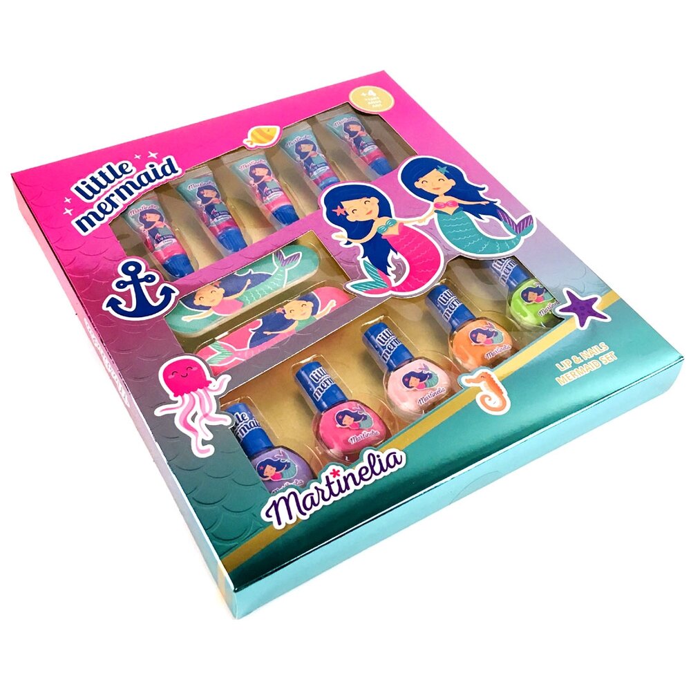 Сияющие губы и роскошный маникюр – заветное желание каждой маленькой модницы. С набором разноцветных лаков и бальзамов для губ Martinelia «Русалочка» девочка сможет каждый день представать в новом образе, научится подбирать оттенки косметики под одежду. В наборе содержатся:<br />5 бальзамов для губ;<br />5 лаков для ногтей;<br />2 пилочки.<br />Лаки и бальзамы легко удаляются и не вызывают аллергии.