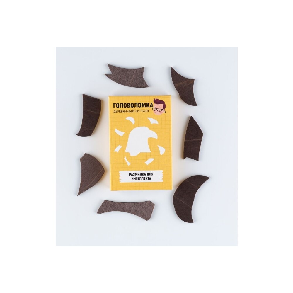 IQ головоломка — интеллектуальная разминка для людей любого возраста. Подходит как детям, так и взрослым. На первый взгляд может показаться, что головоломку легко собрать. Но на самом деле, она может заставить задуматься даже опытного игрока. Развивает и тренирует логическое мышление, наглядно образную и зрительную память, пространственное видение и умение анализировать. Набор "Орел" состоит из 7 деталей, изготовленных из высококачественной березовой фанеры. Задача: собрать из элементов, находящихся внутри, фигуру изображенную на упаковке.