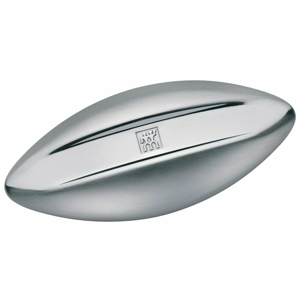 Незаменимый предмет для хозяек – металлическое мыло из нержавеющей стали. При контакте с водой металл мгновенно нейтрализует и устраняет неприятные запахи чеснока, лука или рыбы. Благодаря специальному держателю мыло приклеивается практически к любой поверхности, а значит, будет всегда под рукой.<br />,Компания Zwilling J.A. Henckels, на протяжении вот уже нескольких столетий являющаяся своеобразным эталоном безупречного немецкого качества и практичности, по праву заслужила мировое признание. Продукция Zwilling J.A. Henckels, производимая из высококачественной нержавеющей стали FRIODUR® методом холодной закалки, пользуется огромным спросом у покупателей по всему миру.<br />,Характеристики:<br />,Размеры: 9,5х2,5x4,0 см;<br />,Предназначение: для удаления неприятного запаха (лук, чеснок, бензин, никотин), обработать руки мылом под струей воды;<br />,Материал: высококачественная нержавеющая сталь 18/10.