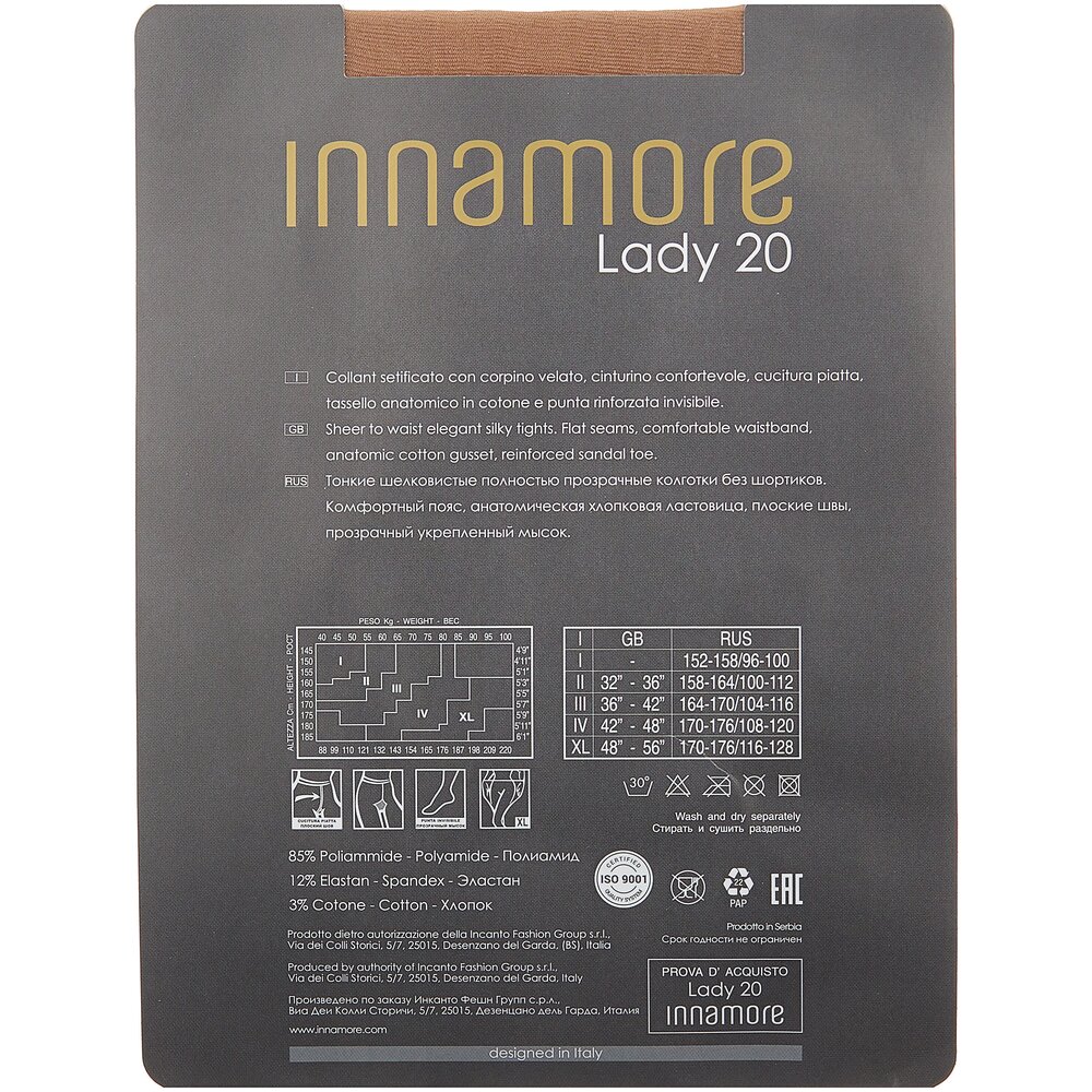 Колготки Innamore Lady, 20 den, размер 4-L, caramello (бежевый)