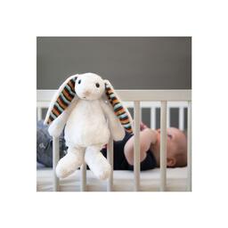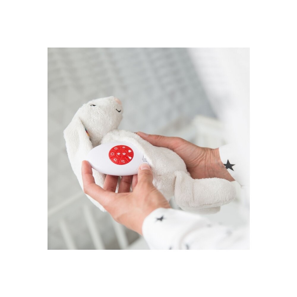 ZAZU Музыкальная мягкая игрушка-комфортер Биби (BIBI) 1+ Мягкая игрушка-комфортер, которая успокоит вашего малыша, воспроизводя звуки маминого сердцебиения. 6 разных мелодий. Звук сердцебиения, белый шум, звуки природы, 3 успокаивающие мелодии. Встряхните, чтобы включить. Не нужно включать музыку, просто встряхните игрушку, и она начнёт проигрывать последнюю выбранную мелодию. Автоматическое выключение. Через 10 минут звук автоматически выключится. Датчик звука. Звук включится, если ваш малыш проснётся ночью и заплачет. Уровень громкости. Установите громкость на желаемый уровень. Источник питания. 3x батарейки AAA (не входят в комплект) Материал: ABS-пластик, полиэстер