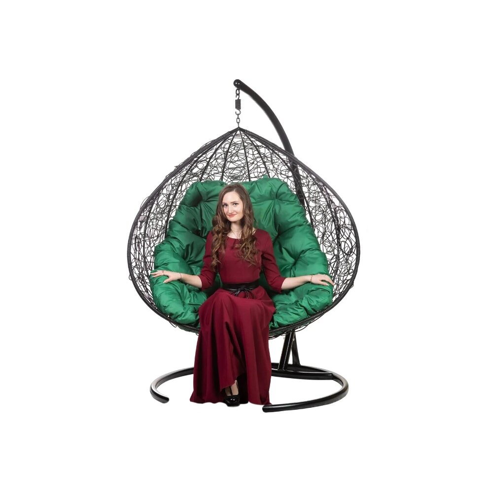 Кресло подвесное Bigarden "Gemini Promo", черное, зеленая подушка (чехол в подарок)