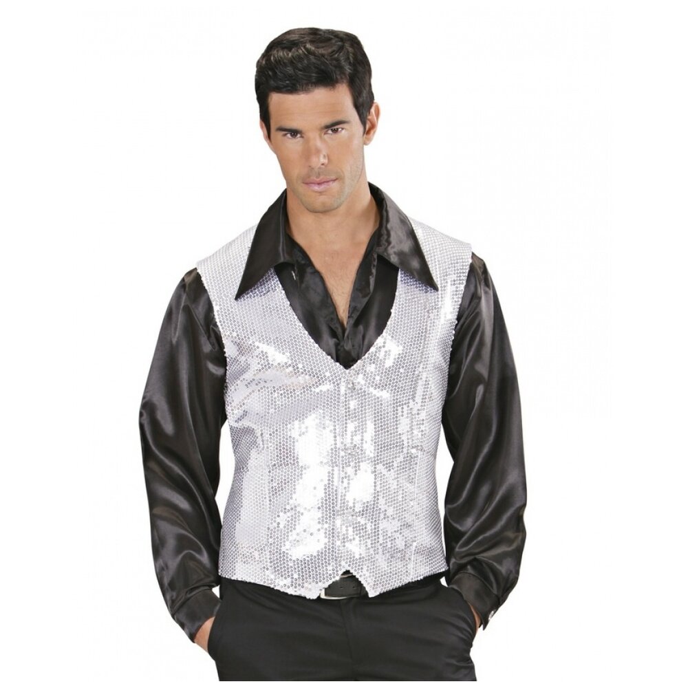 Мужская серебряная жилетка Размер 50-52. Основной цвет - серебряный Персонаж - танцор диско В комплекте - жилет Материал - пайетки