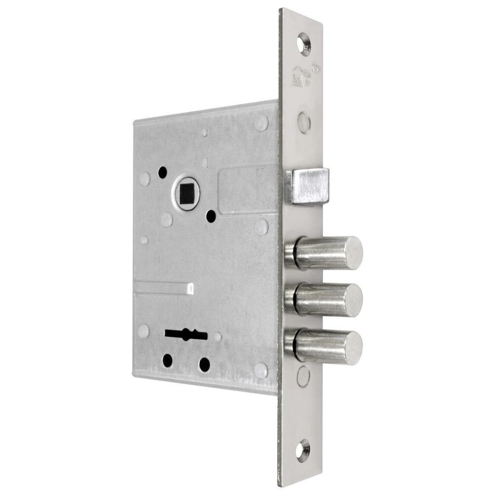 Замок врезной 8-сувальдный с защелкой и фалевыми ручками. Предназначен для установки в двери толщиной 40-50 мм. Замок универсальный, его можно устанавливать как в правые, так и в левые двери, переустановив защелку.<br />Комплектуется 3/5 стальными ключами.<br />Покрытие корпуса — цинковое. Покрытие лицевой и ответной планок — никелевое. Замок имеет защиту от высверливания. Изготовлен из высокопрочных материалов. Имеет защитное покрытие.