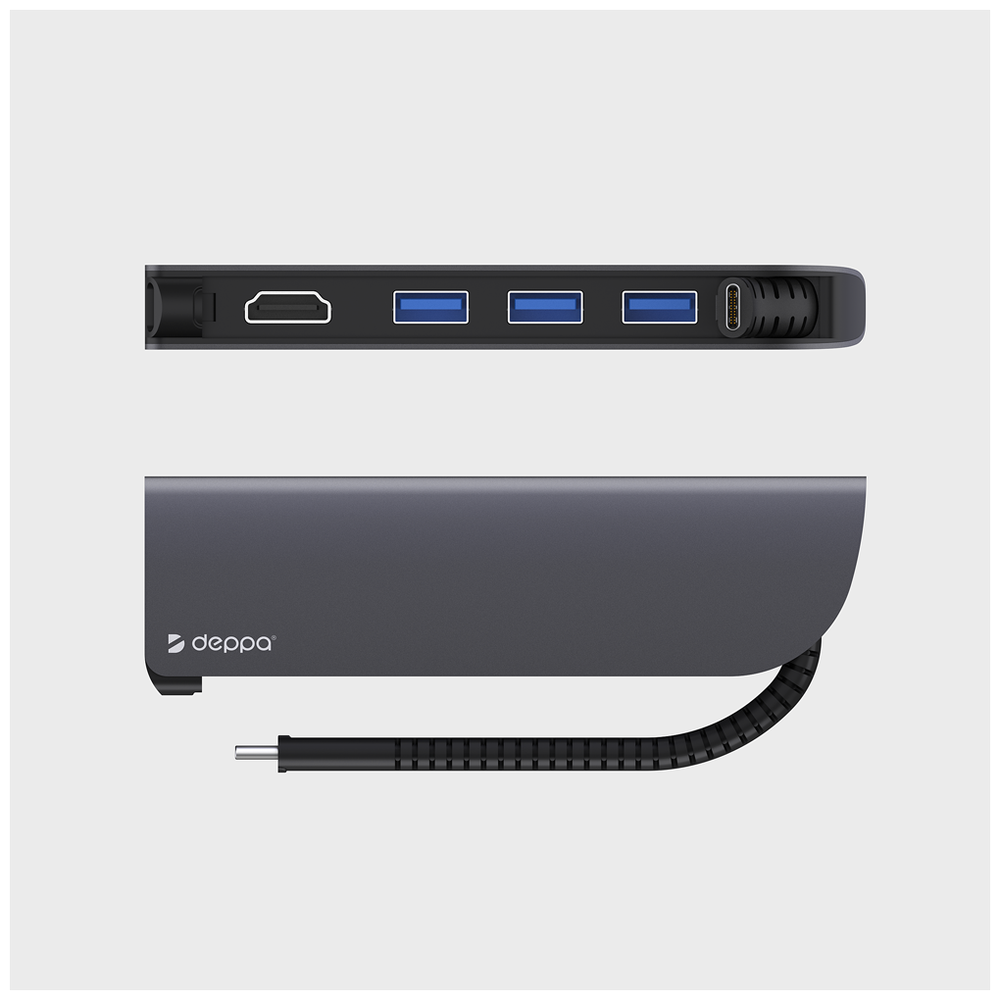 USB хаб Deppa мультипортовый Type-C 5 в 1, HDMI 4K, Power Delivery, 3 x USB 3.0 для Macbook, iPad, ПК