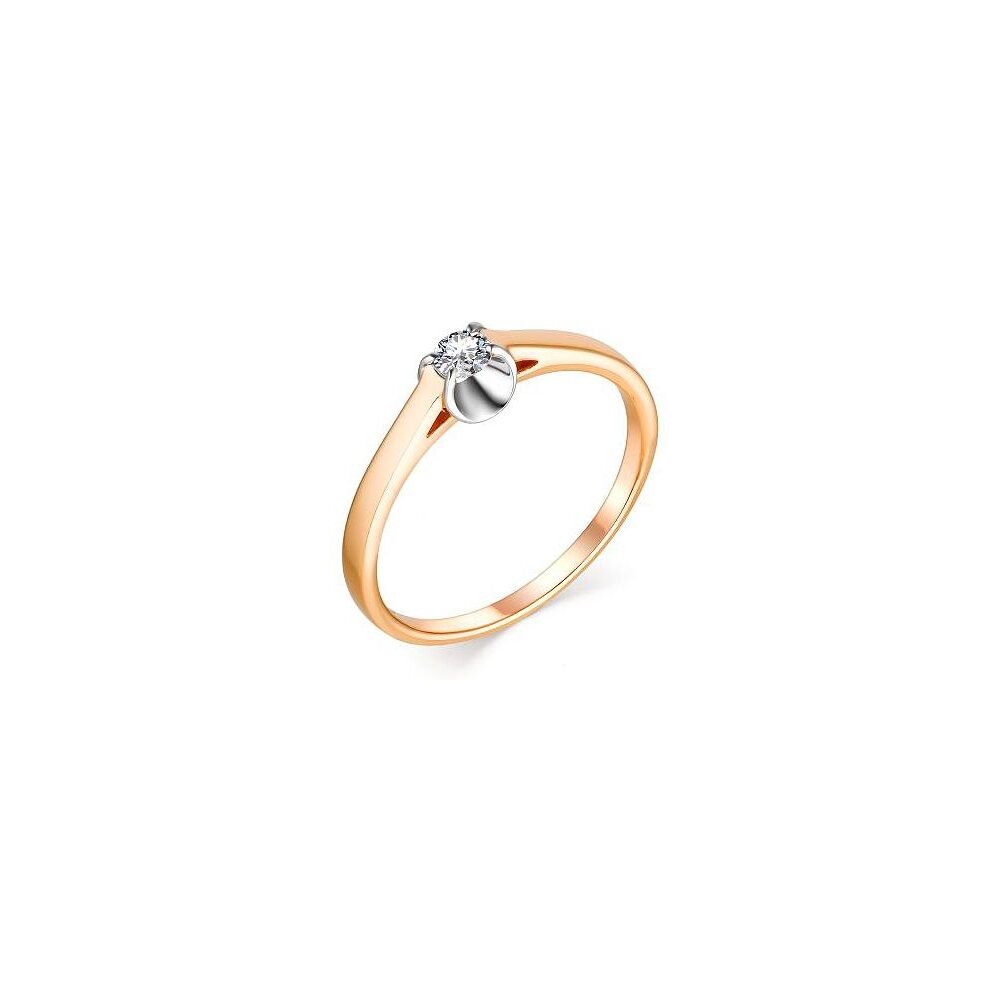 АЛЬКОР Кольцо с 1 бриллиантом из красного золота 13303-100, размер 18