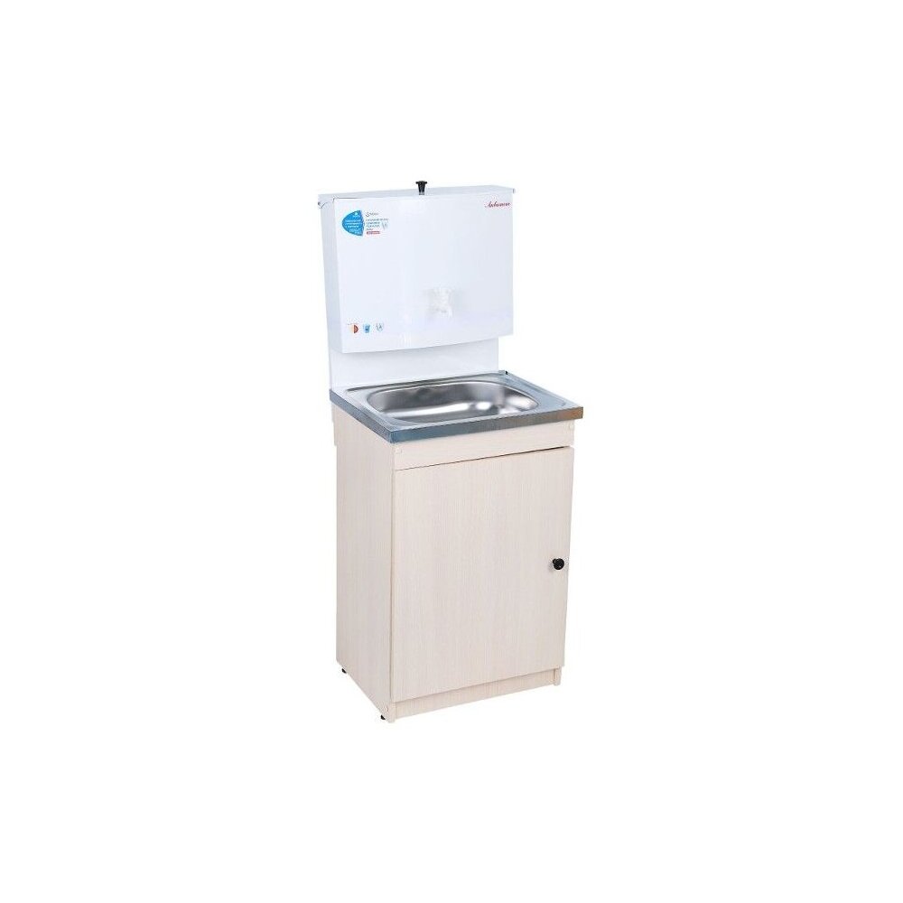 Умывальник для дачи Акватекс с деревянной тумбой (ЛДСП), водонагревателем 20 (17) л и нерж. мойкой (белый), кран металл
