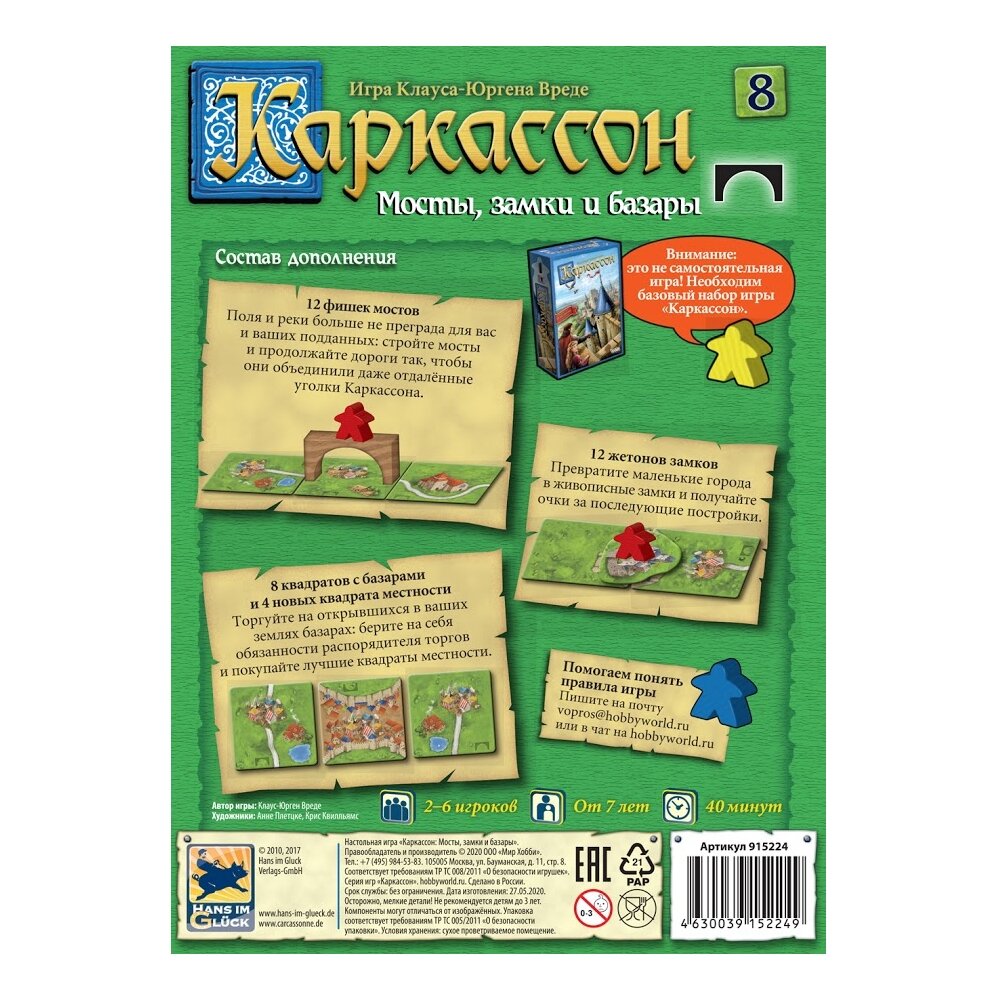 - Дополнительная информация не является самостоятельной игрой, позволяет расширить функционал базовой игры Каркассон (приобретается отдельно)