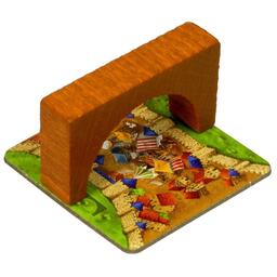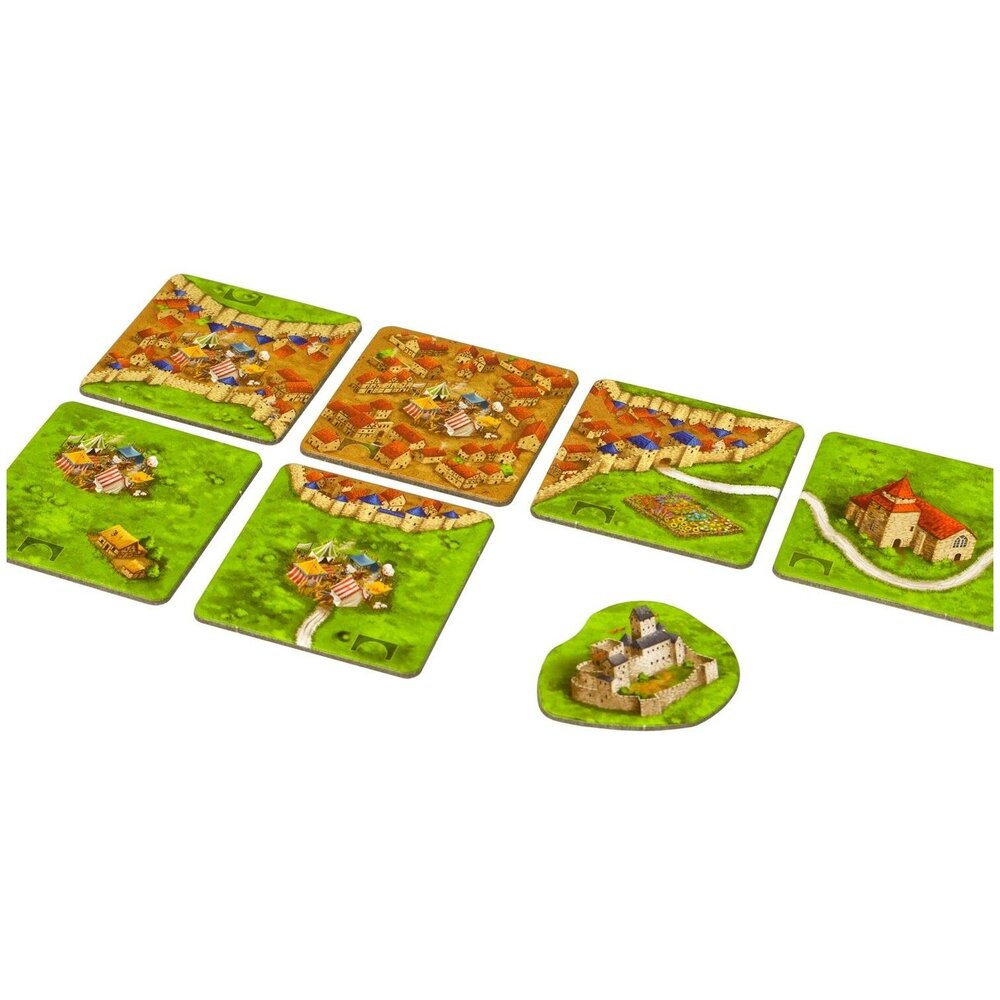 - Комплектация 12 фишек мостов, 12 жетонов замков, 8 квадратов с базарами и 4 новых квадрата местности, правила игры