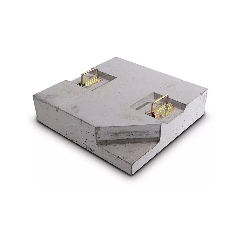 Утяжелительная бетонная плита с ручками для перемещения, весом 65 кг. Размер 490*490*120мм. Цвет плиты светло-серый.