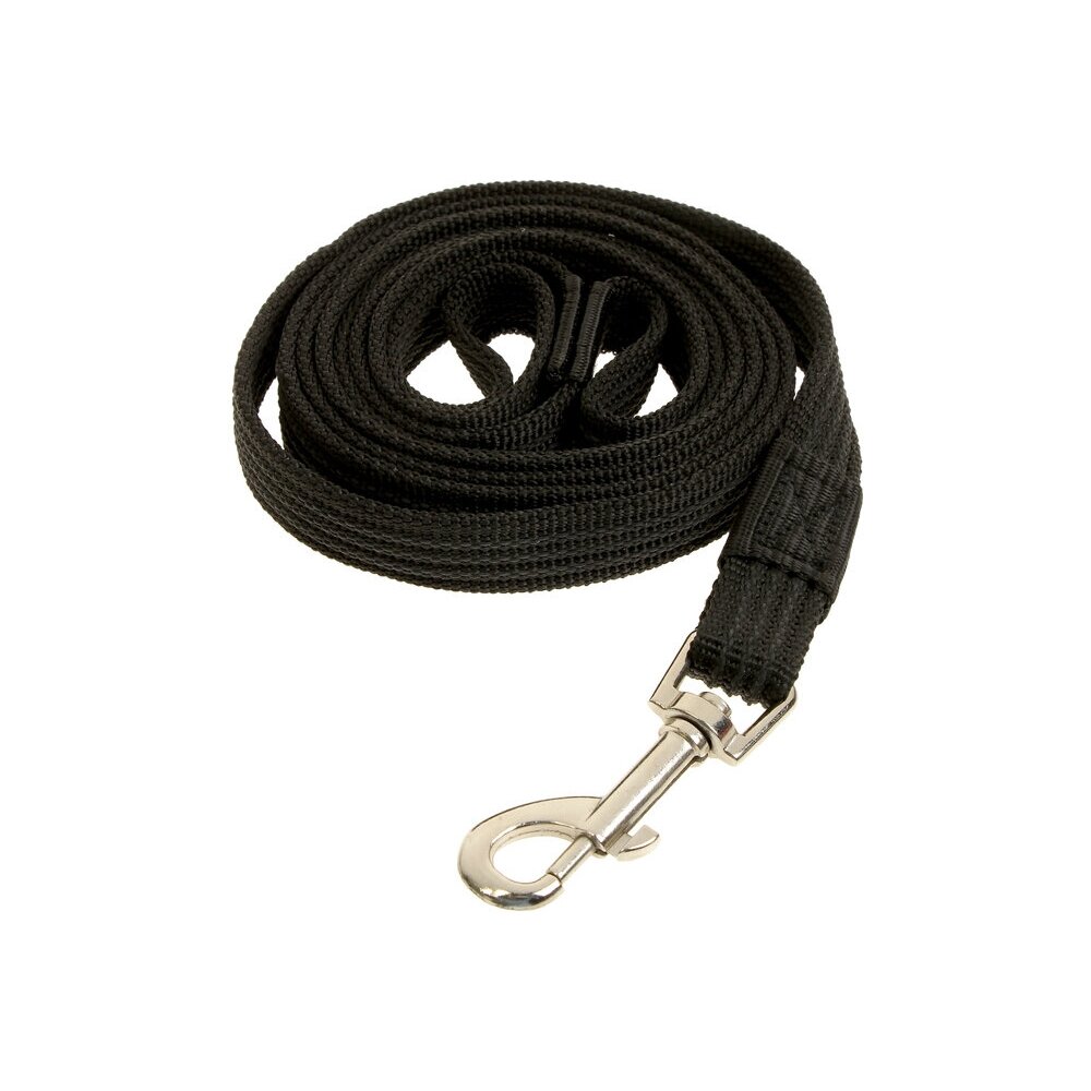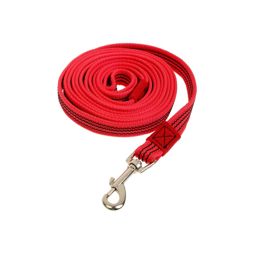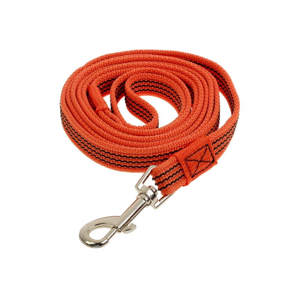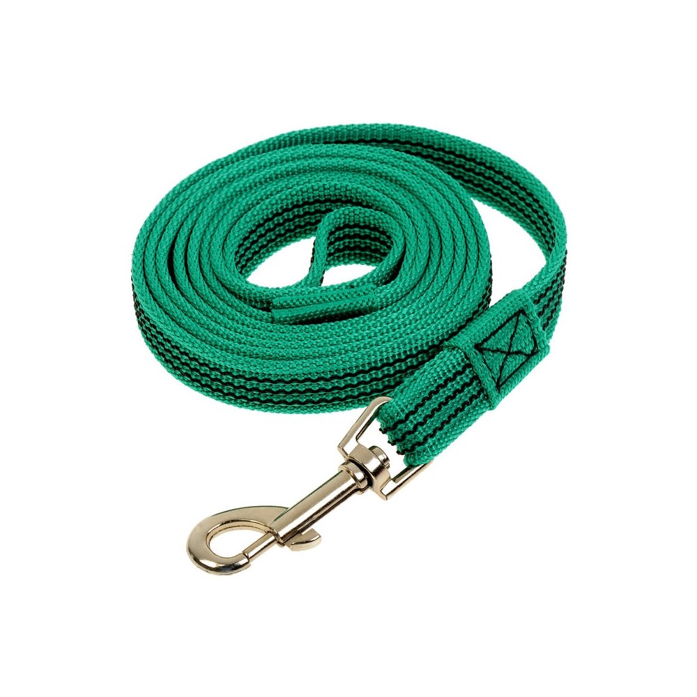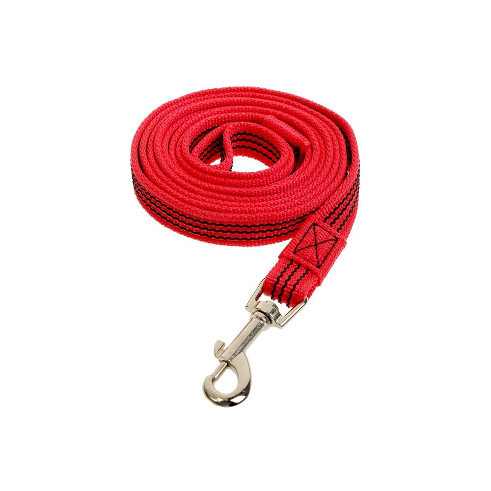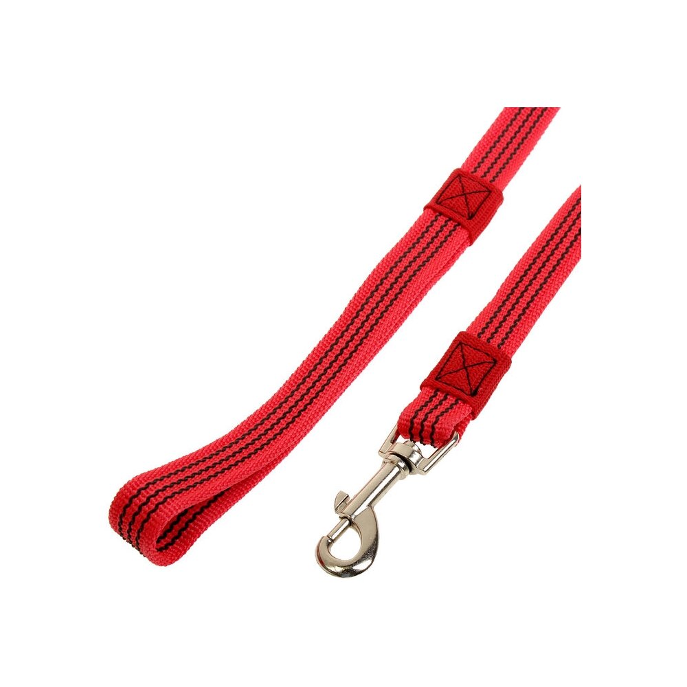 Удобный, прочный, надёжный поводок для собаки, изготовленный из качественных материалов. На одном конце проводка есть качественно выполненный металлический карабин, который обеспечит крепкую фиксацию. На другом конце — удобная петля, которая не будет натирать руки.