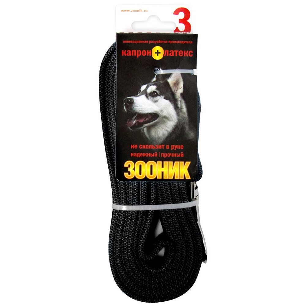 Поводок для собак Зооник капрон+латексная нить черный 3 м 20 мм