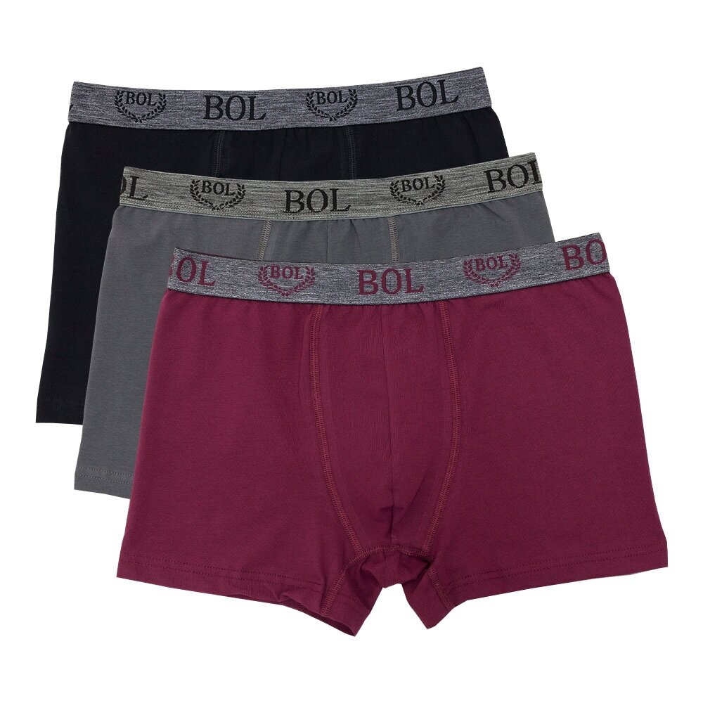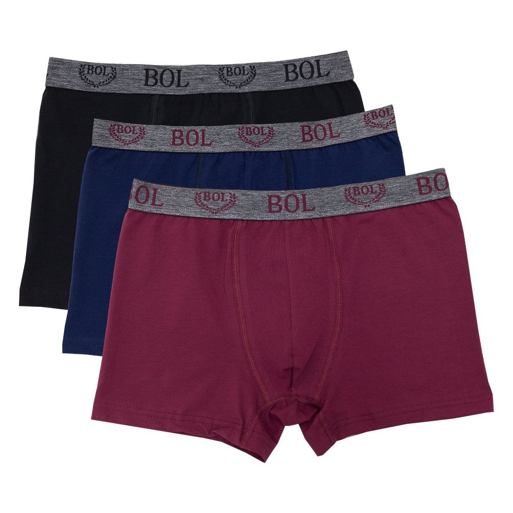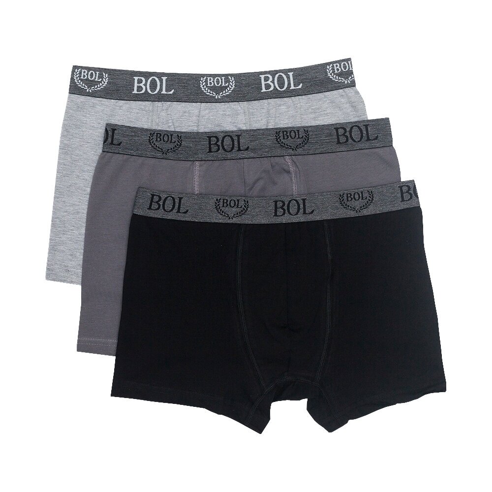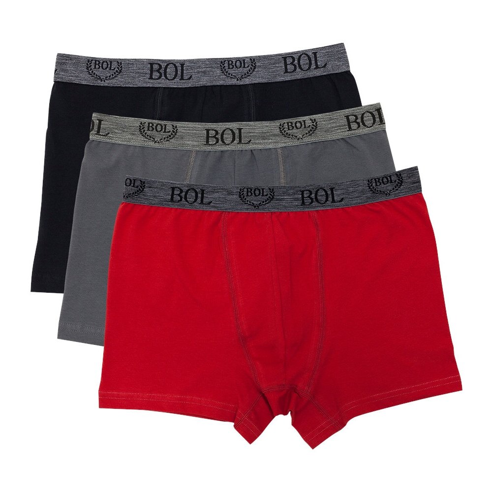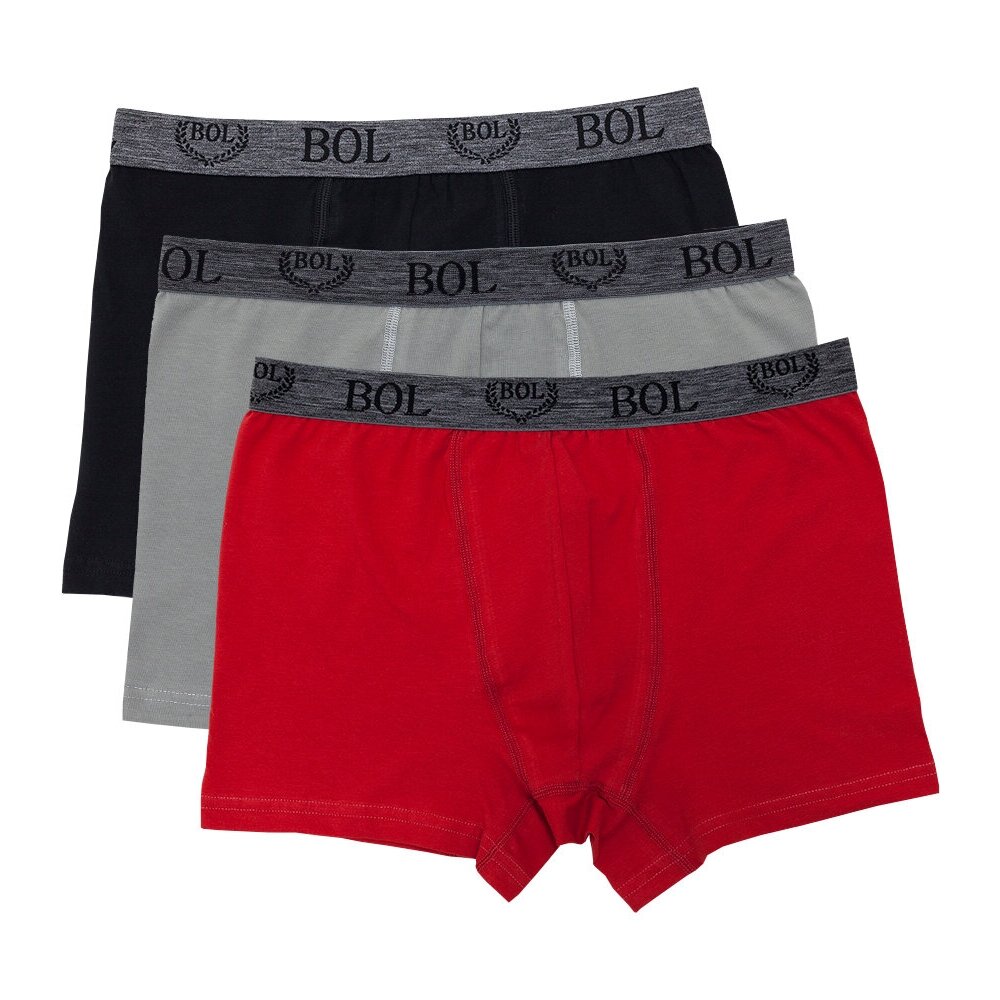 BOL Men's Набор трусов боксеры с профилированным гульфиком, 3 шт., размер 2XL(56-58), черный/серый/красный