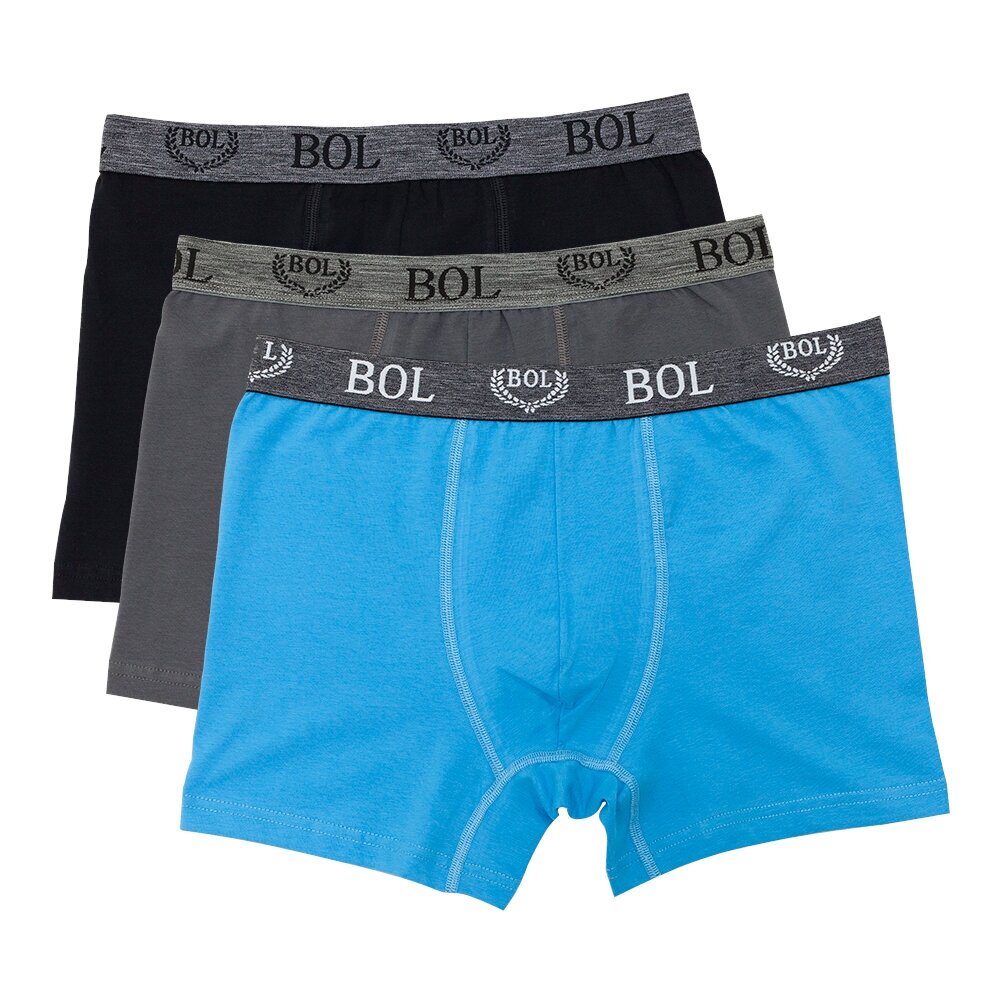 Обратите внимание на нижнее белье. Для мужчин комфорт важен так же, как и для женщин: если комфортно в белье, значит и весь день пройдет в оптимистичном настроении. Мужские трусы-боксеры из качественного материала (хлопок 95% + эластан 5%), "дышащие" и удобные - прекрасный подарок для любого мужчины. Неважно кому вы захотите преподнести сюрприз, для нас важно другое - насколько качественным является товар из упаковки. Как раз за качество мы ручаемся головой: не сомневайтесь, швы прострочены отлично и ровно, трусы имеют эластичный поясок. А цена трусов-боксеров BOL Mens - приятный бонус ко всем достоинствам. Так что спешите купить несколько упаковок для всех родственников! Выберите любой набор, состоящий из трех разных расцветок. Возможна погрешность: при выборе между двумя размерами, выбирайте больший.