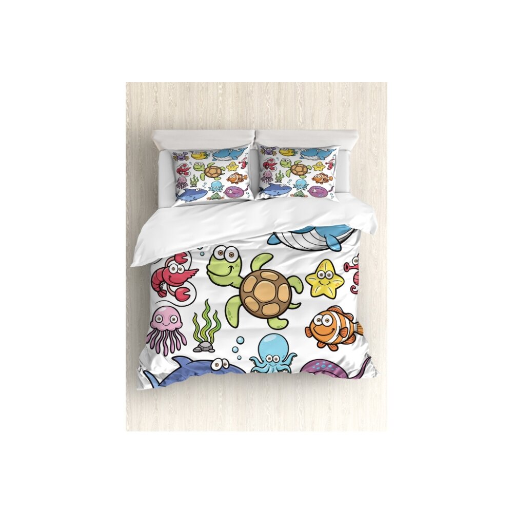Преобразите свою спальню, используя удивительное постельное белье с фоторисунком "Море улыбок". Благодаря технике сублимационной печати принт, нанесенный на белье, не истирается, не выгорает и сохраняет яркость красок в течение всего периода эксплуатации. Ткань, из которой сшит комплект, очень мягкая и приятная к телу, напоминает дышащую микрофибру и обладает эффектом Soft Touch. Белье выгодно отличается своими антибактериальными, антистатическими и гипоаллергенными свойствами. А благодаря повышенной прочности еще и обладает высокой износостойкостью. 1, 5-спальный комплект постельного белья состоит из пододеяльника размером 160x220 см, оснащенного застежкой-молнией, а также 2 наволочек 50x70 см каждая. Рисунок нанесен только на внешнюю сторону изделий, обратная сторона - белая. Дизайн: "анималистический". Цвет: "белый;синий;зеленый".