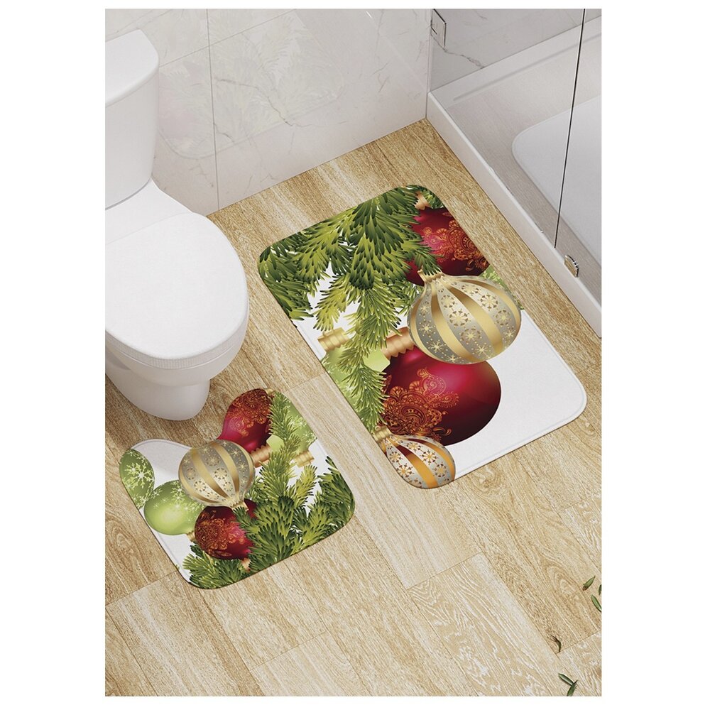 Набор из 2-х ковриков для ванной и туалета JoyArty "Новогодний блеск": 50x80, 45x45 см, с латексным напылением