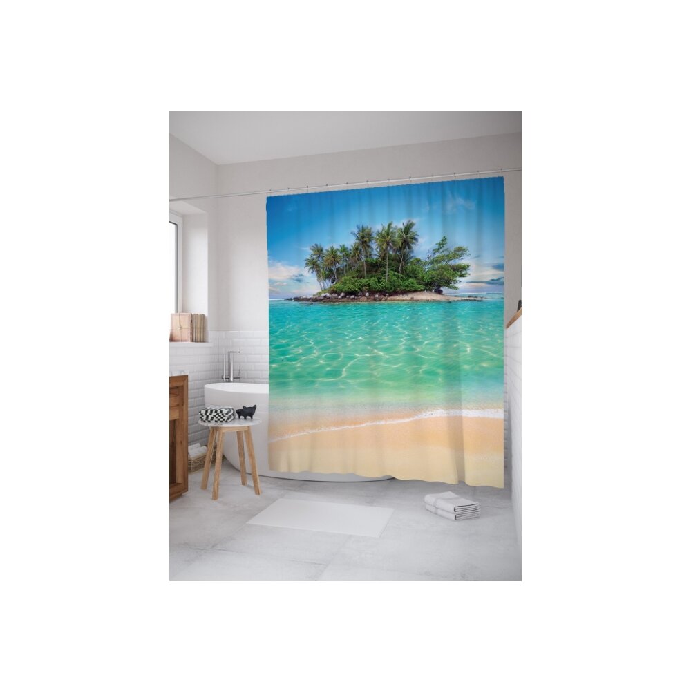Штора (занавеска) для ванной JoyArty "Остров свободы" из ткани, 180х200 см с крючками
