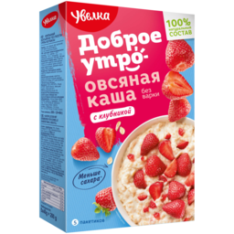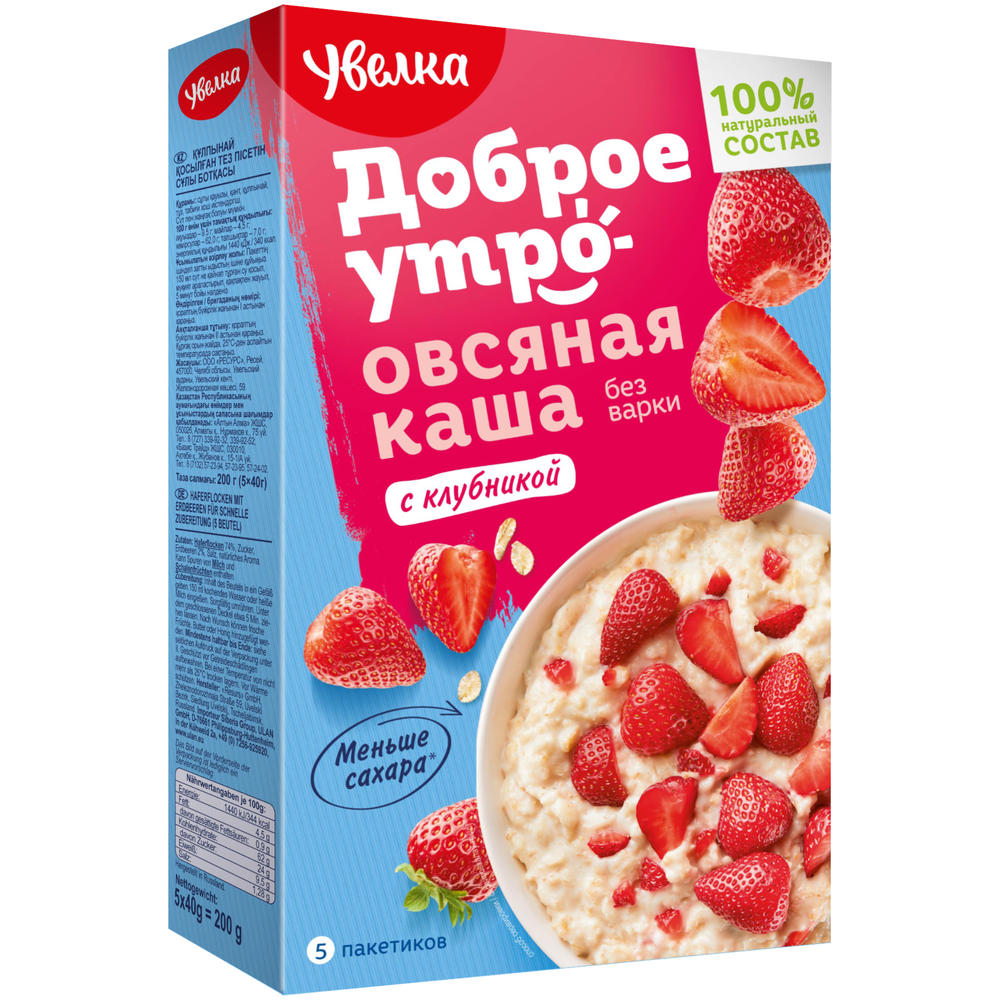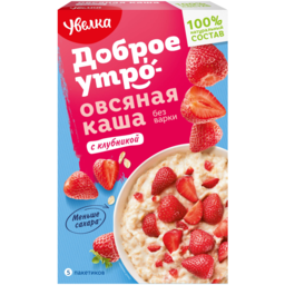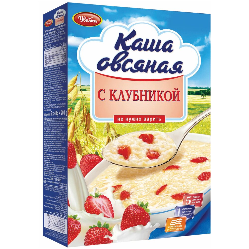Пять пакетиков необыкновенно вкусной и полезной каши «Увелка» позволят мгновенно приготовить завтрак для детей и взрослых! Богатый источник полноценных пищевых волокон — овсяная крупа, обработанная до тончайших пластинок, позволяет не варить кашу, а лишь залить ее горячим кипятком или молоком и оставить на несколько минут. Каша сдобрена кусочками натуральной клубники, с которыми блюдо приобретает особенный нежный вкус и дополнительную питательность.