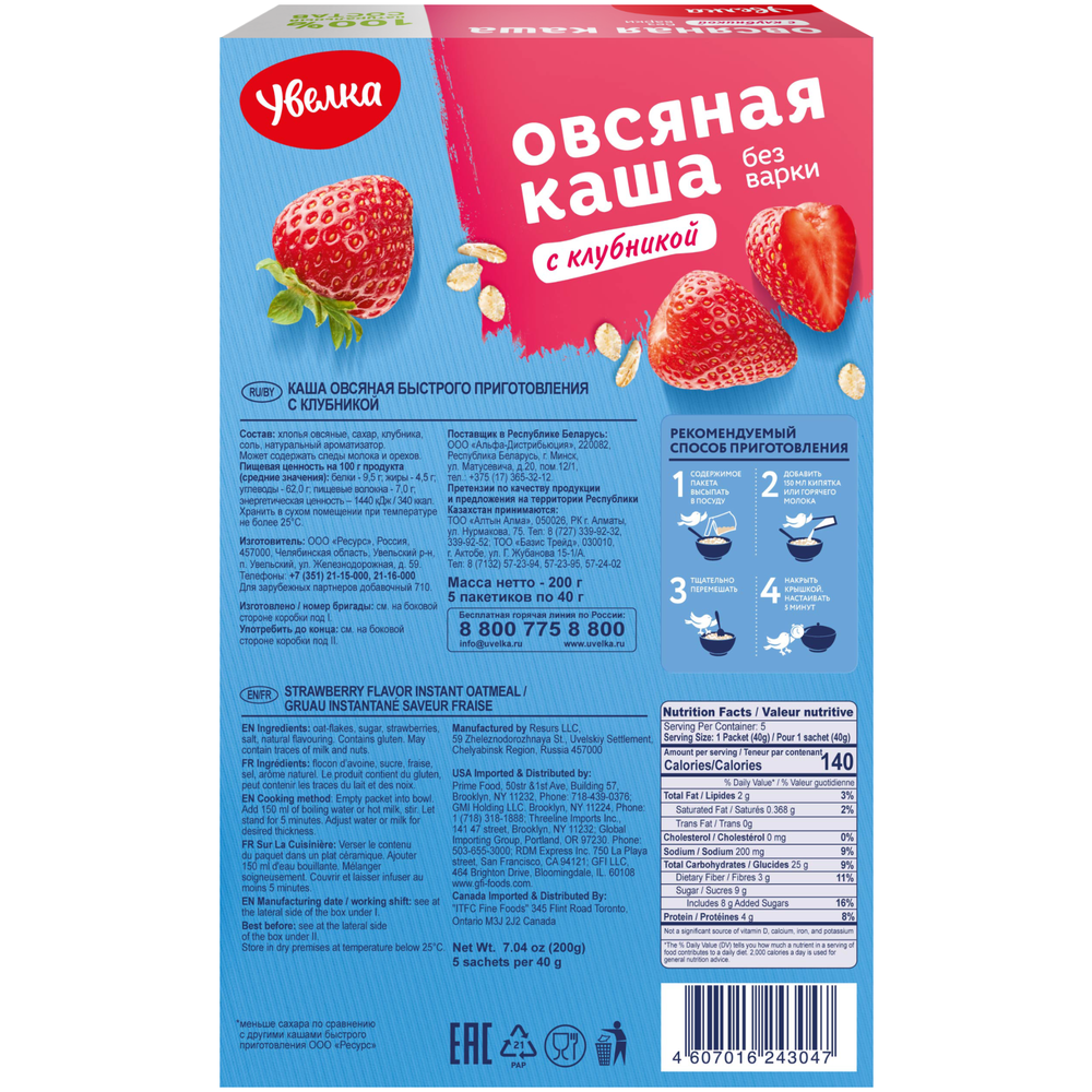Увелка Каша овсяная быстрого приготовления с клубникой, порционная (5 шт.)