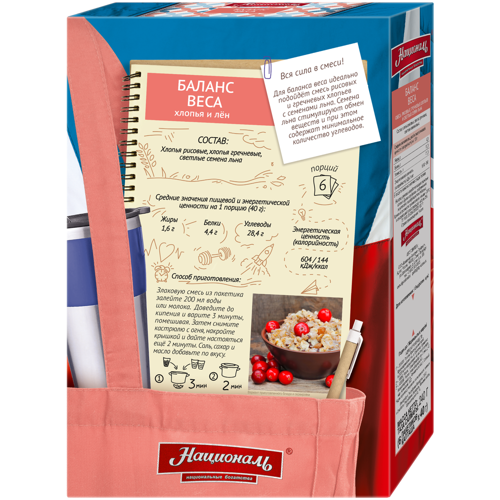 - Состав хлопья рисовые, хлопья гречневые, светлые семена льна
