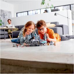 Вдохновите детей и подростков моделью «Сокол Тысячелетия» LEGO® Star Wars (75257). Сборная модель культового кореллианского грузового судна содержит множество деталей, таких как вращающиеся верхние и нижние пушечные турели, 2 пушки с пружинным механизмом, опускающийся пандус и открывающаяся кабина, вмещающая 2 мини-фигурки. Верхние панели также можно открыть для доступа к детализированному интерьеру, который станет идеальным местом действия, чтобы разыграть сцены из фильма «Звездные войны: Скайуокер. Восход» с участием таких персонажей, как Финн, Чубакка, Ландо Калриссиан, Булио, C-3PO, R2-D2 и D-O. Этот знаковый набор LEGO Star Wars также станет отличным экспонатом для коллекции любого поклонника саги. <br />Набор LEGO Star Wars 75257 «Сокол Тысячелетия» – сложный конструктор, созданный по мотивам фильма «Восхождение Скайуокера» и других серий «Звездных войн». В составе конструктора – множество деталей для сборки космического корабля и семь минифигурок. <br />• В набор входят 7 героев LEGO® Star Wars : мини-фигурки Финн, Чубакка, C-3PO, Ландо Калриссиан и Булио, а также фигурки дроидов R2-D2 и D-O LEGO. <br />• Экстерьер модели «Сокол Тысячелетия» LEGO® Star Wars включает вращающиеся верхние и нижние пушечные турели (нижняя вмещает 2 мини-фигурки), 2 пушки с пружинным механизмом, опускающийся пандус и открывающуюся кабину, вмещающую 2 мини-фигурки. <br />• Интерьер модели включает грузовой отсек с 2 контейнерами, навигационный компьютер с вращающимся стулом, диван и голографический стол с дежарик, камбуз, скрытый отсек для контрабанды и гипердрайв с ремонтными инструментами. <br />• Оружие в комплекте: пулеметный арбалет Чубакки, бластер Финна и бластер Ландо. <br />• Вдохновитесь на увлекательную ролевую игру по фильму «Звездные войны: Скайуокер. Восход» с легендарным кореллианским грузовым судном. <br />• Этот набор LEGO® Star Wars станет отличным подарком ко дню рождения, Новому году или по любому другому случаю. <br />• Размеры звездолета: более 14 см в высоту, 44 см в длину и 32 см в ширину.