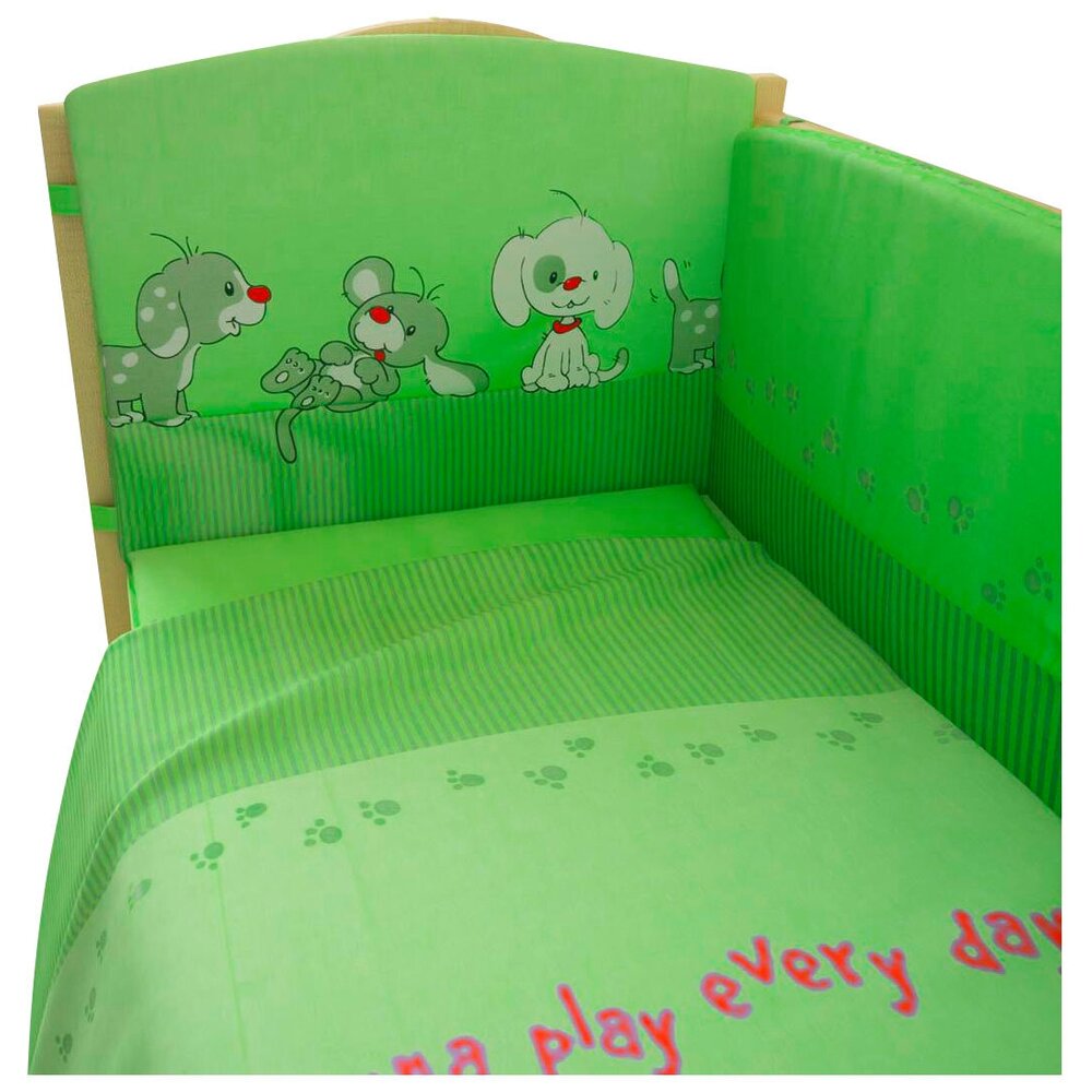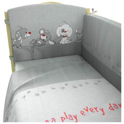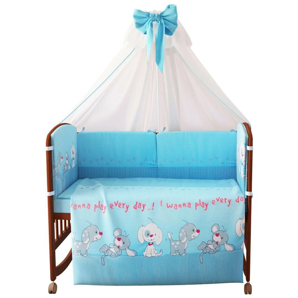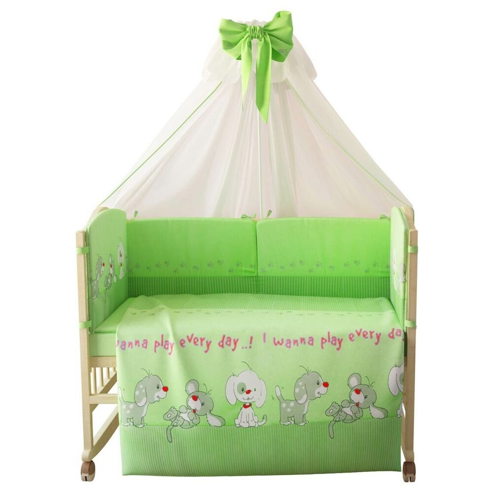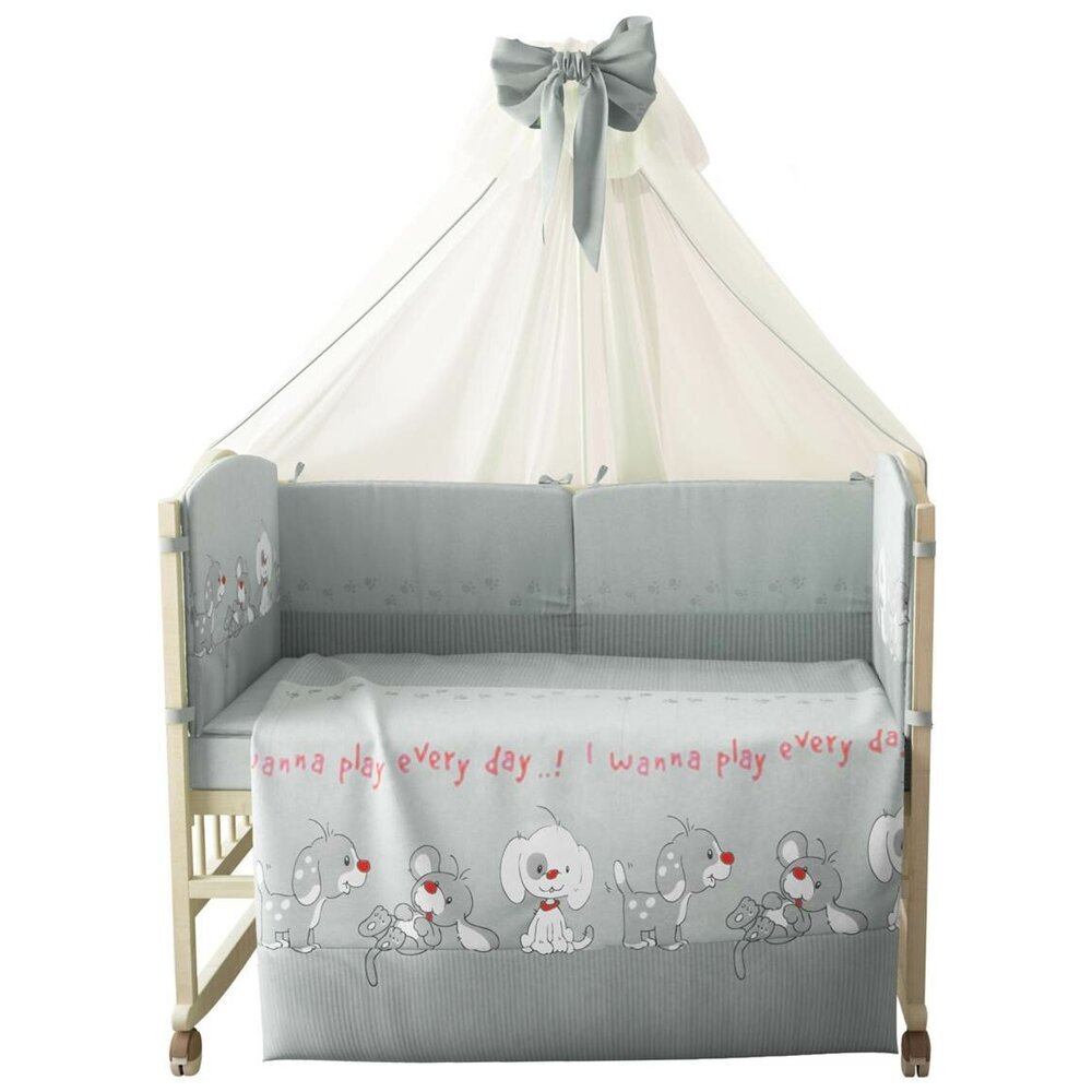 Комплектация- борт 45 х 38 х 210 см, 2 части; - балдахин 400 см; - простыня на резинке 140 х 70 см;<br/> - наволочка 40 х 60 см;<br/> - пододеяльник 110 х 140 см;<br/> - одеяло 110 х 140 см;<br/> - подушка 40 х 60 см.