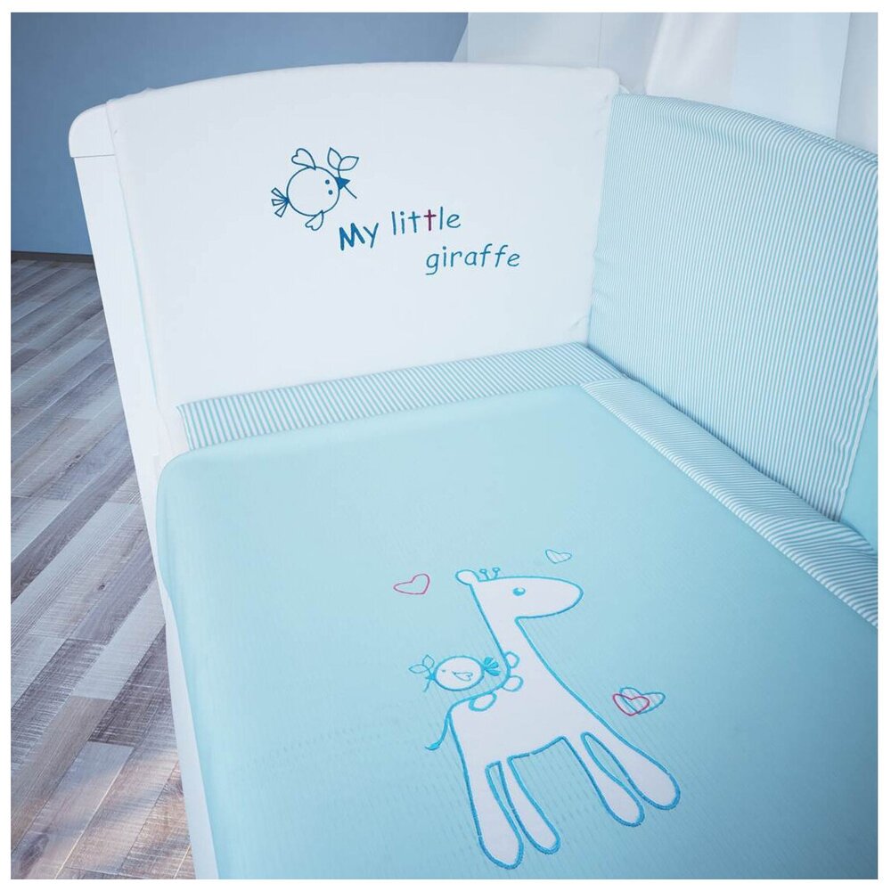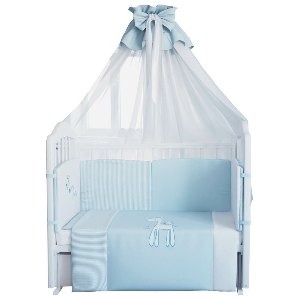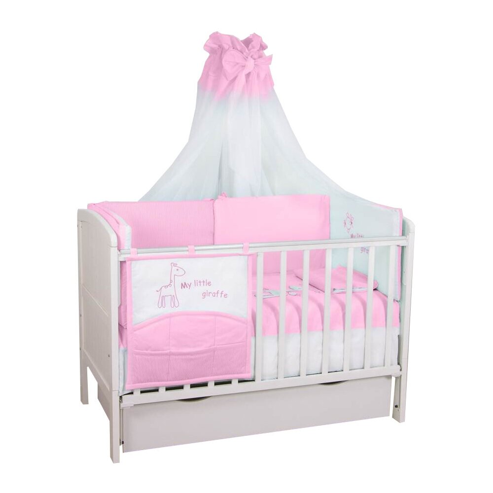 - В комплекте балдахин, бампер, наволочка, одеяло, пододеяльник, простыня на резинке
