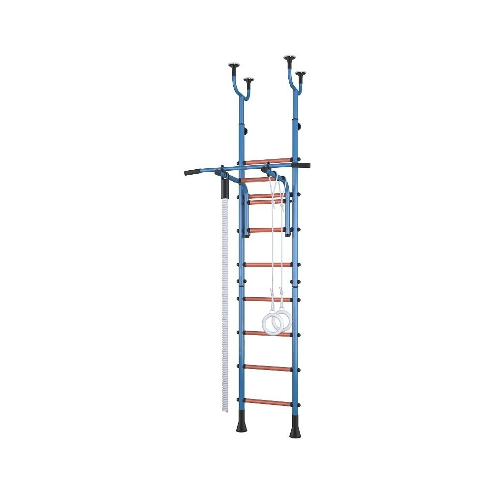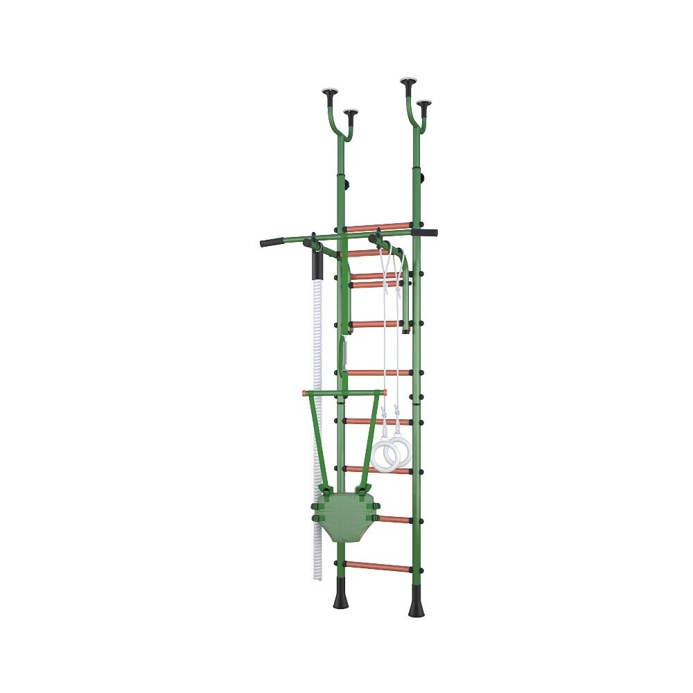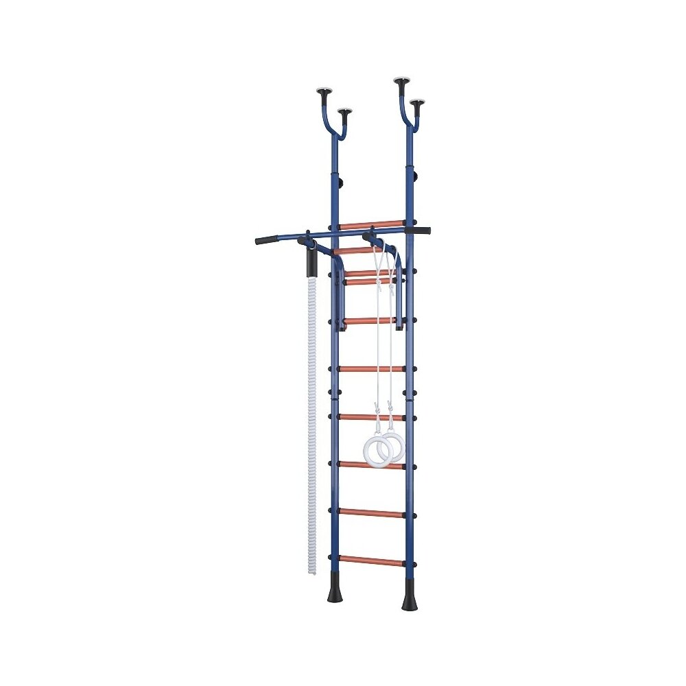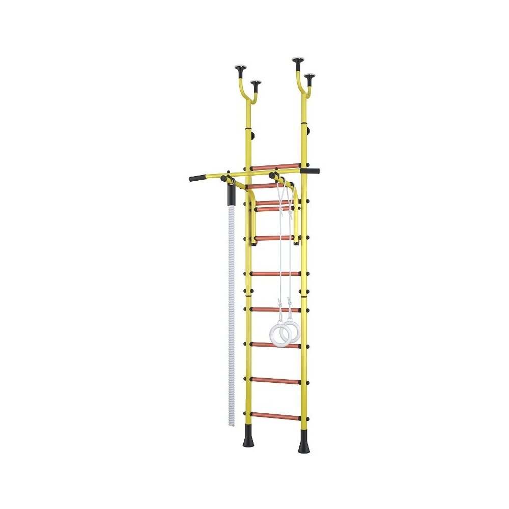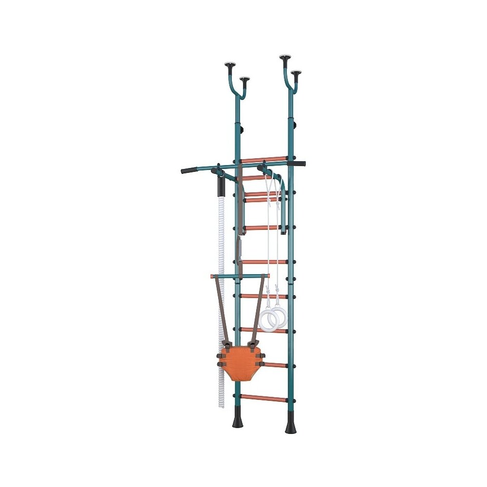 Спортивный комплекс Polini Sport крепится враспор и предназначен для выполнения различных спортивных упражнений, способствующих физическому развитию детей. Включает в себя: -Навесной подвижный турник; -Тарзанка с прыгунками; -Гимнастические кольца; -Канат. Предназначен для детей от 1 года (при использовании прыгунков). Возможность регулировки высоты(от 245 см до 270 см). Высокая прочность конструкции: толщина стен..
