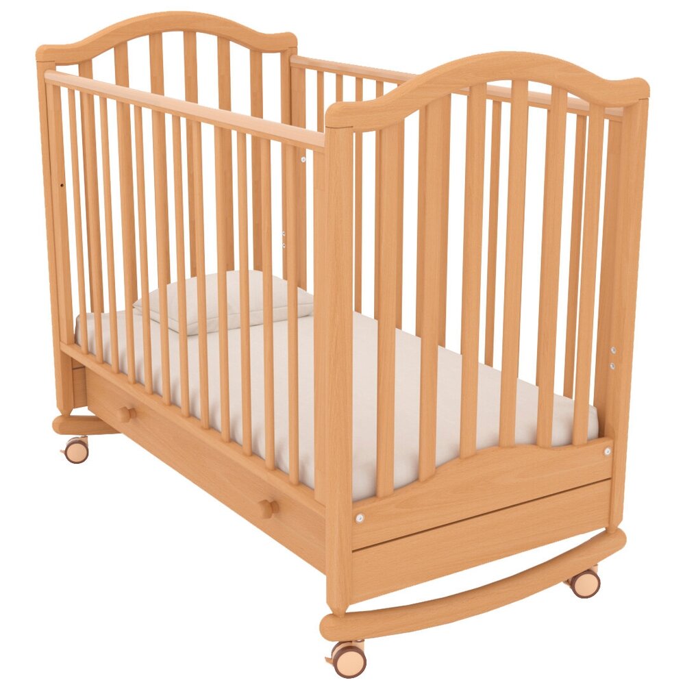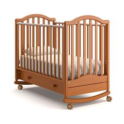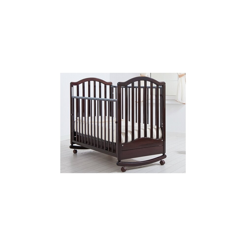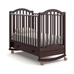 Кроватка детская Гандылян Лейла (качалка) соединила в себе лучшие качества детской мебели, такие как безопасность, элегантность и функциональность. Отсутствие острых углов полностью исключает опасность для вашего ребенка. А экологически чистые материалы, использованные при производстве и покрытие из нетоксичных лакокрасочных материалов на водной основе полностью безопасны. Стоит так же упомянуть защитные силиконовые накладки. Кроватка прекрасно перемещается на своих четырех колесиках, их можно снять, потеряв мобильность получить плавную качалку, которую так любят маленькие дети. Передняя панель настраивается по высоте, фиксируясь в своих положениях замочком. Ее можно и совсем снять, тогда кроватка превратиться в диванчик для детей постарше.<br />Описание<br />Зачастую когда у молодых родителей появляется их первый малыш, они сталкиваются с проблемой нехватки места. Этак кроватка особенно порадует таких родителей, ведь в ней есть выдвижной ящик для хранения постельного белья, хотя конечно его можно использовать для игрушек или пеленальных принадлежностей. Вместительный ящик для белья в основании выполнен из ламинированного ДСП и снабжен шариковыми направляющими. Гладкое лаковое покрытие поверхностей кроватки защитит кожу малыша от получения травм. Для покрытия используется лак на водорастворимой основе – он абсолютно безопасен для младенца.