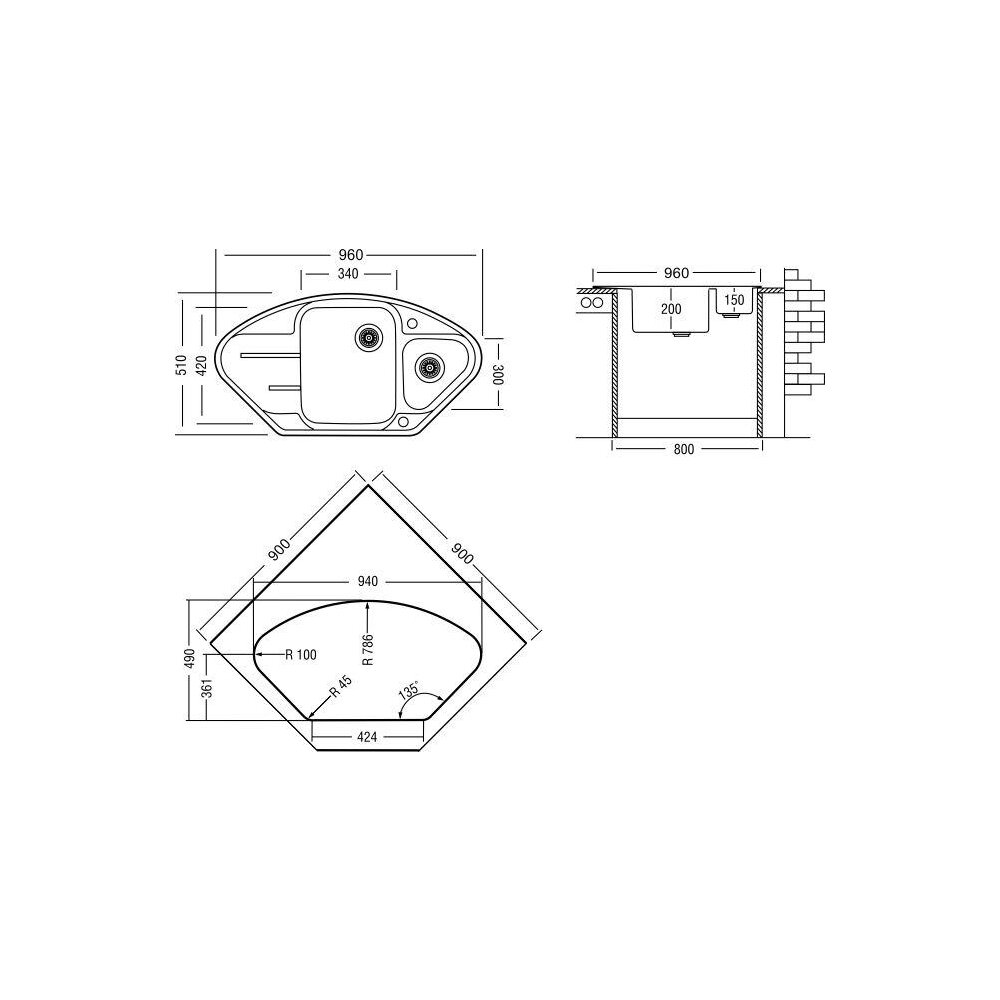 Врезная кухонная мойка 96 см Longran Lotus LTG 960.510.15 marone/93