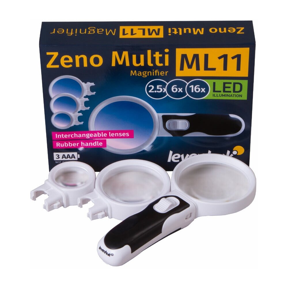 Levenhuk Zeno Multi ML11 – три лупы в одной. Благодаря сменным линзам можно подобрать подходящее увеличение для решения любой задачи. Линзы отличаются друг от друга не только кратностью, но и диаметром, и устанавливаются на удобную обрезиненную ручку. Крепление простое, но надежное. В лупе предусмотрена подсветка из двух светодиодов.Мультилупа Levenhuk Zeno Multi ML11 – это удобный оптический инструмент для изучения мелких объектов. С ней можно читать, рассматривать предметы искусства и электронные платы, контролировать выполнение точных работ (качество сварных швов, текстильных работ и проч.).