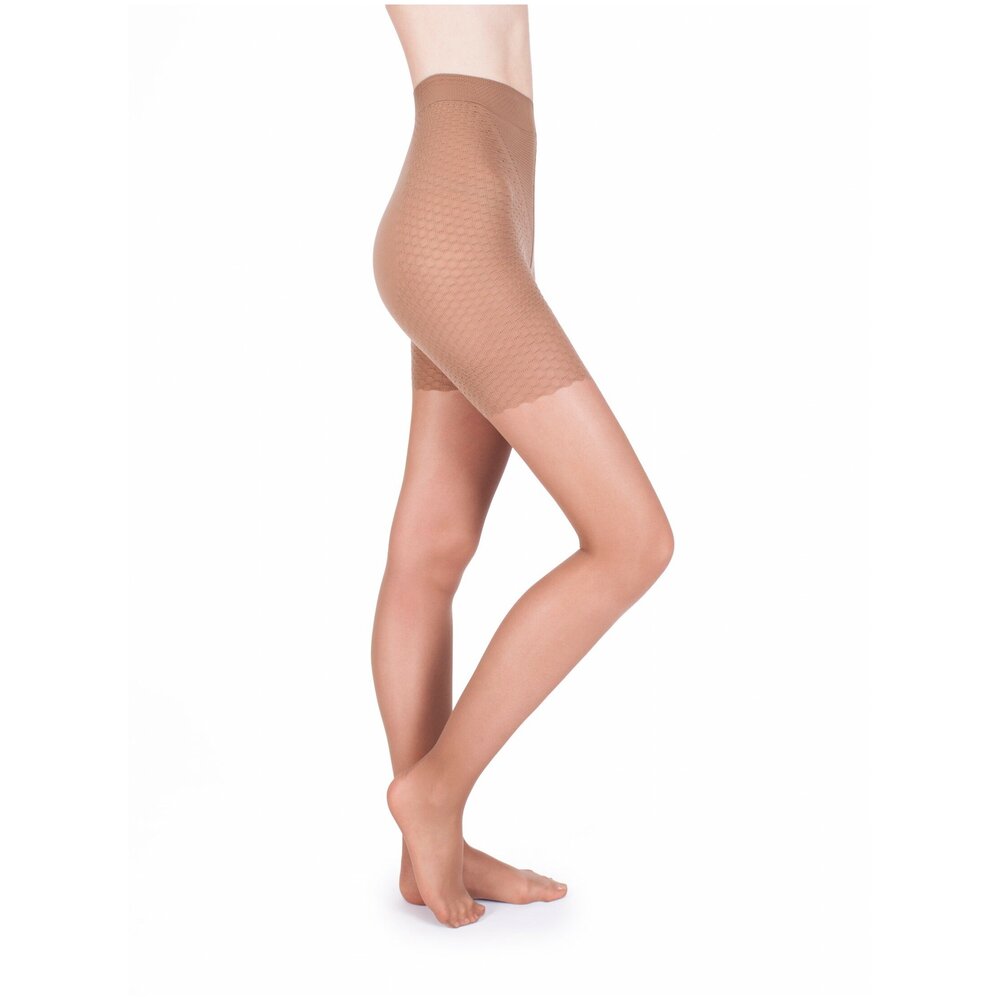 Колготки, 40 ден, классика. Профилактические колготки с шортиками с массажным антицеллюлитным эффектом. Колготки Massage изготовлены по специальной технологии с применением особого ячеистого плетения, создающего на полотне рисунок в виде сетки. Перемещение ячеек во время движения тела обеспечивает назаметный. но достаточно эффективный массаж, который воздействует на проблемные участки тела, улучшает кровообращение и обмен веществ, тем самым ускоряя процесс расщепления жировых клеток. Колготки плотно облегают фигуру, хорошо пропускают воздух и влагу, поэтому их можно надевать под одежду в качестве компрессионного белья с массажным эффектом. Регулярное использование колготок Massage поможет женщинам уменьшить объем бедер, справиться с целлюлитом. Также рекомендуется их использовать в послеродовый период.