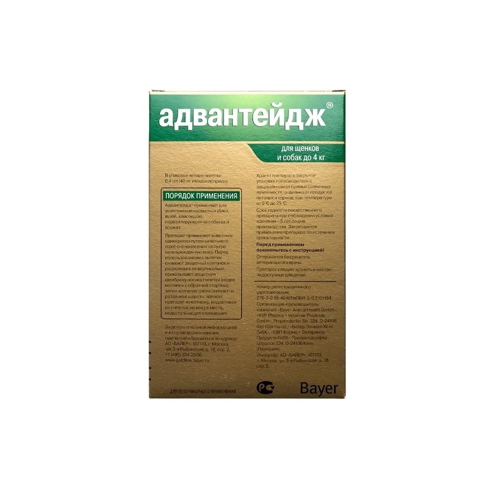 - Порядок применения и дозировка Можно применять щенкам старше 8-недельного возраста; Обработку беременных и кормящих самок при необходимости следует проводить с осторожностью под наблюдением ветеринарного врача; Применяют животным однократно путем капельного нанесения на сухую, неповрежденную кожу; Препарат наносят животному на кожу в места, недоступные для слизывания (собакам – между лопатками у основания шеи, кошкам – на затылке); После нанесения препарата на кожу имидаклоприд постепенно распределяется по всей поверхности тела и накапливается в эпидермисе, волосяных луковицах и сальных железах животного, оказывая длительное (до 4 недель) инсектицидное действие; Не рекомендуется купать и гладить животное в месте нанесения препарата, пока место нанесения не станет сухим