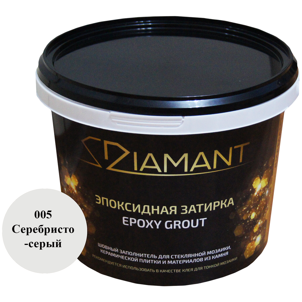 Двухкомпонентная эпоксидная затирка DIAMANT. Сфера применения: Клей: Для всех типов мозаики и ко всем основаниям. Заполнитель швов: Для всех видов облицовочных материалов На полах и стенах. при внутренних и наружных работах; Для использования во влажных помещениях. Душевых и ванных комнатах. саунах. хамамах. а также для отделки бассейнов; В жилых помещениях. в производственных цехах. медицинских учреждениях и в учреждениях с высокой проходимостью; Для всех типов мозаики. керамической плитки. керамогранита. клинкера. изделий из натурального и искусственного камня; Использование с системами «теплый пол». Преимущества и выгоды эпоксидной затирки DIAMANT: Изготовлена на основе инертного светопреломляющего кристаллического наполнителя (стеклянные микрошарики из выбеленного стекла. создают идеально гладкий шов).Фракция наполнителя 100-200 мкм (минимальная фракция заполнителя). Для заполнения швов от 1 до 15 мм. Идеальная сферическая форма наполнителя влияет на легкость работы. а также исключает повреждение поверхности облицовочных материалов. в том числе стеклянной и металлизированной мозаики. Химически стойкая (устойчива к кислотам. щелочам. применяется во всех помещениях с агрессивными средами бассейны. хамамы. медицинские и детские учреждения. в том числе операционных. лабораториях. на предприятиях пищевой и химической промышленности. агрокомплексах. молочных комбинатов итд).Время жизни 60 мин. не имеет аналогов. (увеличенное время жизни затирки позволяет обработать большую площадь и минимизировать потери затирки). Безопасно для окружающей среды Противогрибковая (содержит компоненты подавляющие образования грибка и плесени). 100% гидроизоляция и защита от загрязнений. Высокая стойкость к механическим нагрузкам и воздействию - 6.5 по шкале мооса. обеспечивающая долговечность и высокую прочность швов. (применяется в зонах высокой проходимости и нагрузок (торговые центры. переходы. лестничные зоны. логистические центры). Транспортировка и хранение до -45 с (5 циклов заморозки-разморозки). Содержит УФ блокиратор (не выцветает под воздействием ультрафиолета).Температура эксплуатации т -45 с до 100 с. Для внутренних наружных работ.