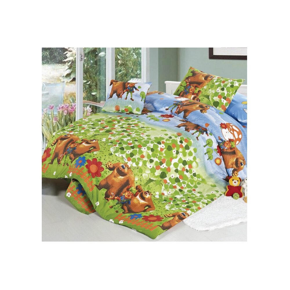 Постельное белье 1.5-спальное СайлиД C-58, поплин, 1 наволочка 50 х 70 см, зеленый/голубой