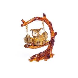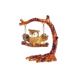 Шкатулка декоративная интерьерная универсальная для ювелирных украшений, бижутерии в стиле Дом Фаберже (Faberge) коллекционная сувенирная фигурка"Сова на качелях" декор, статуэтка, винтаж, подарки, сувениры, jewelry, jewellery, owl. Лимитированная серия из 250 штук с индивидуальным номером. Ручная работа, пьютер, эмаль, позолота, Австрийские кристаллы. Design by Keren Kopal, Israel